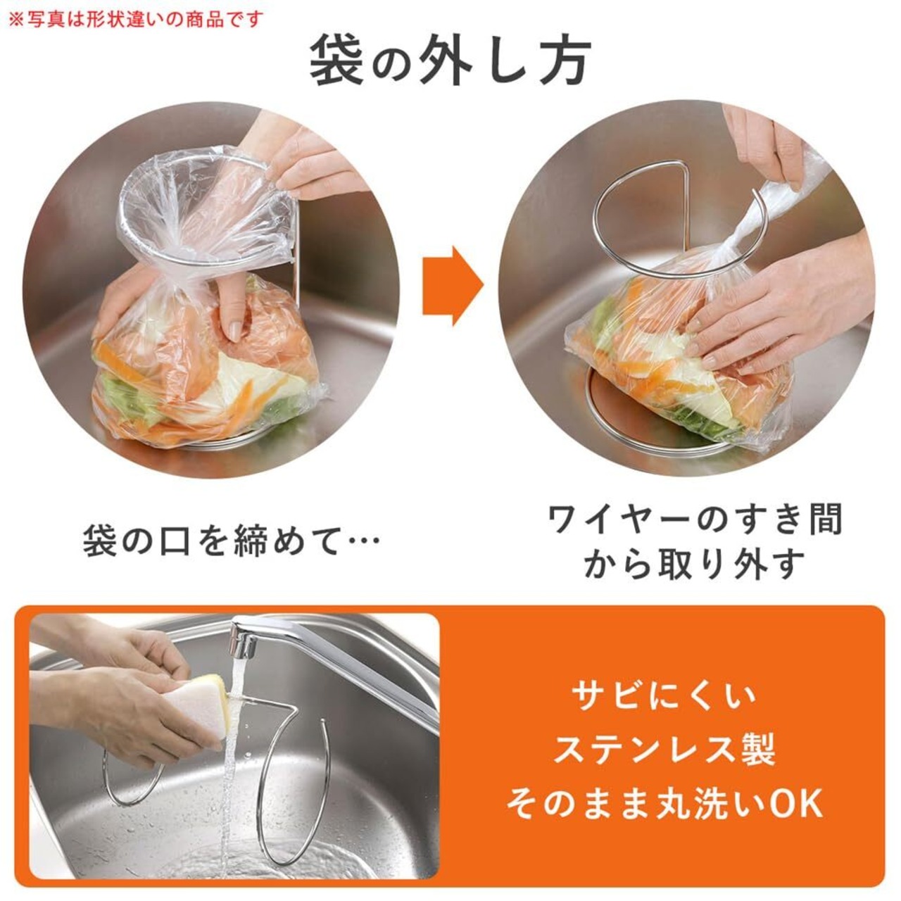 下村企販 ポリ袋ホルダー 扇型 【日本製】 お手入れ簡単 ぬめりにくい ひっくり返して使い分け 生ごみスタンド 三角コーナー代用 ごみ箱 大 シンク下 台所 野菜の皮むき ポリ袋再利用 エコ シルバー ステンレス 燕三条 40047
