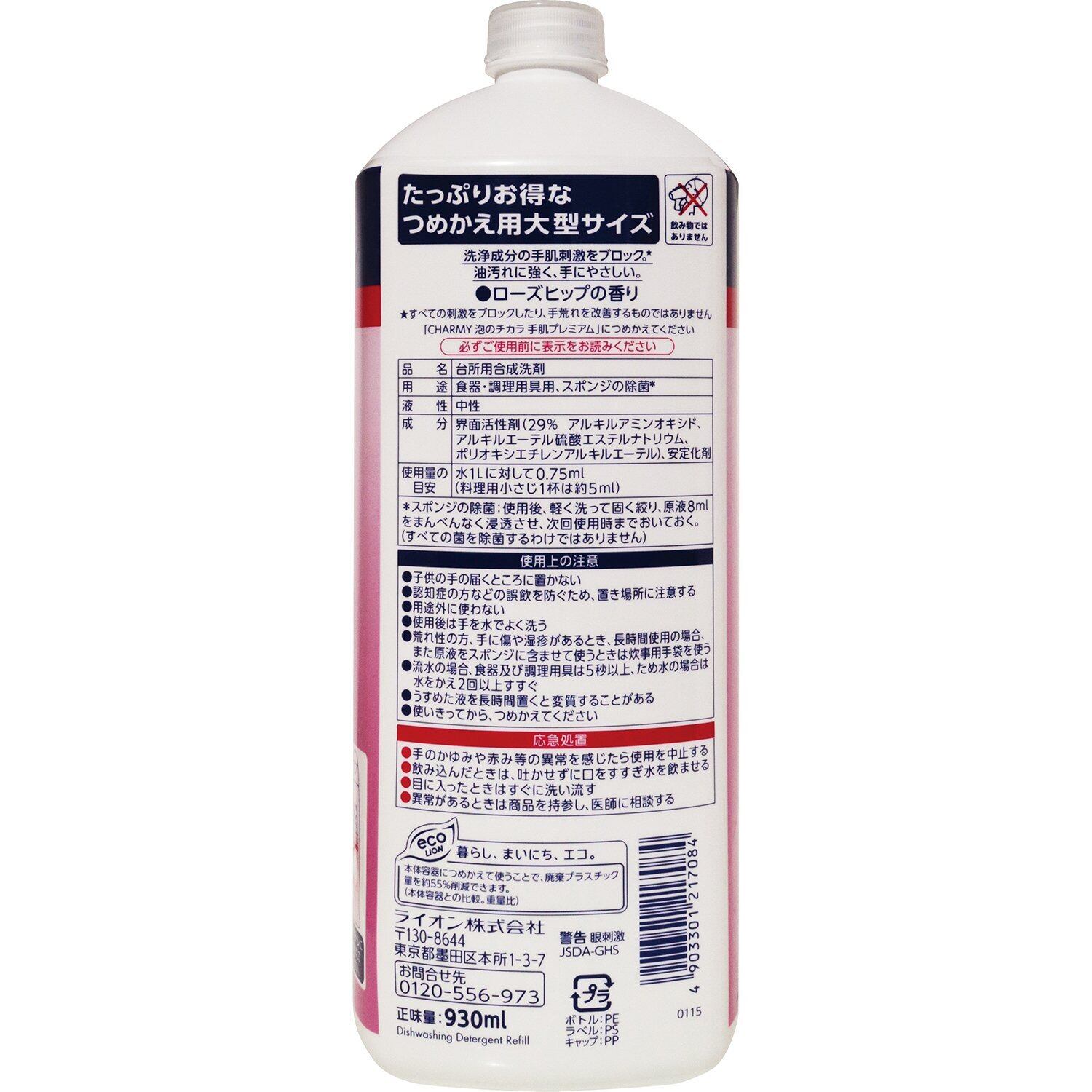驚きの洗浄力で手肌もいたわる台所用洗剤です。 ■刺激ブロック技術によって、高い洗浄力はそのままに、洗浄成分の手肌刺激をブロックできるので、手をいたわりながら洗えます。 ■天然保湿成分(乳酸ナトリウム)を配合。 ■食器を洗った後の手肌の「しっとりした感触」で手肌へのやさしさを実感できます。 ■油汚れを分解する力強い泡が、しつこい油汚れも一度ですっきり落とします。 ■やさしいローズヒップの香りです。 ■スポンジの除菌もできます。■たっぷりお得なつめかえ用大型サイズです。(930mL)