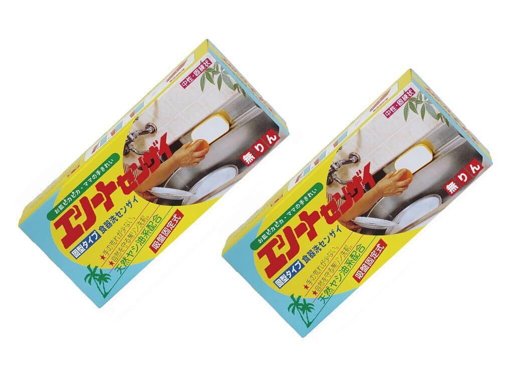 【まとめ買い】ニッシン化研 天然ヤシ油 食器洗い 台所用洗剤 手荒れ少ない 中性 無リン ロングセラー 固形タイプ 吸盤固定式 日本製「エリートセンザイ580g」 (2個組)