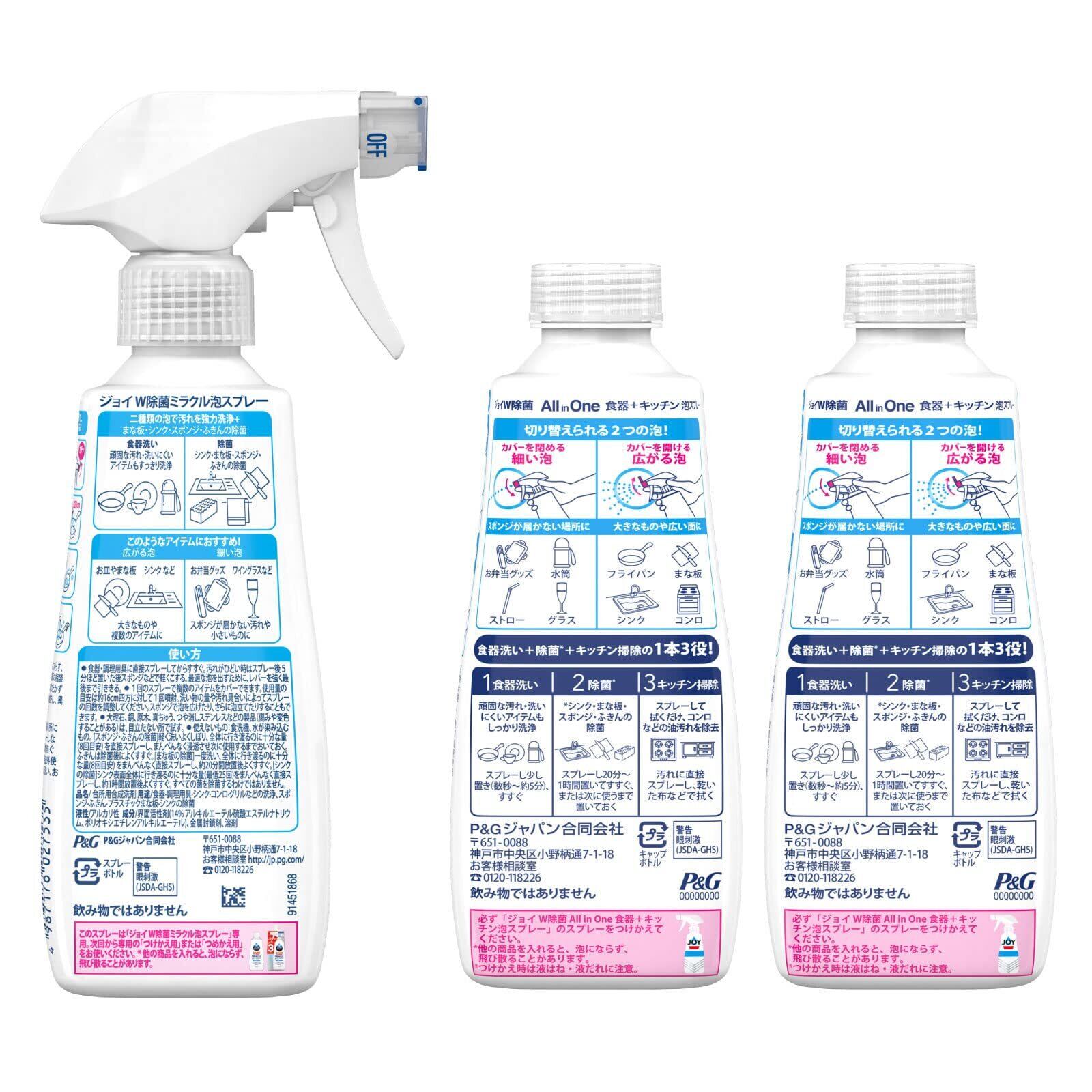【まとめ買い】 ジョイ W除菌 ミラクル泡スプレー 食器用洗剤 微香 本体 275mL + つけかえ用 275mL × 2個
