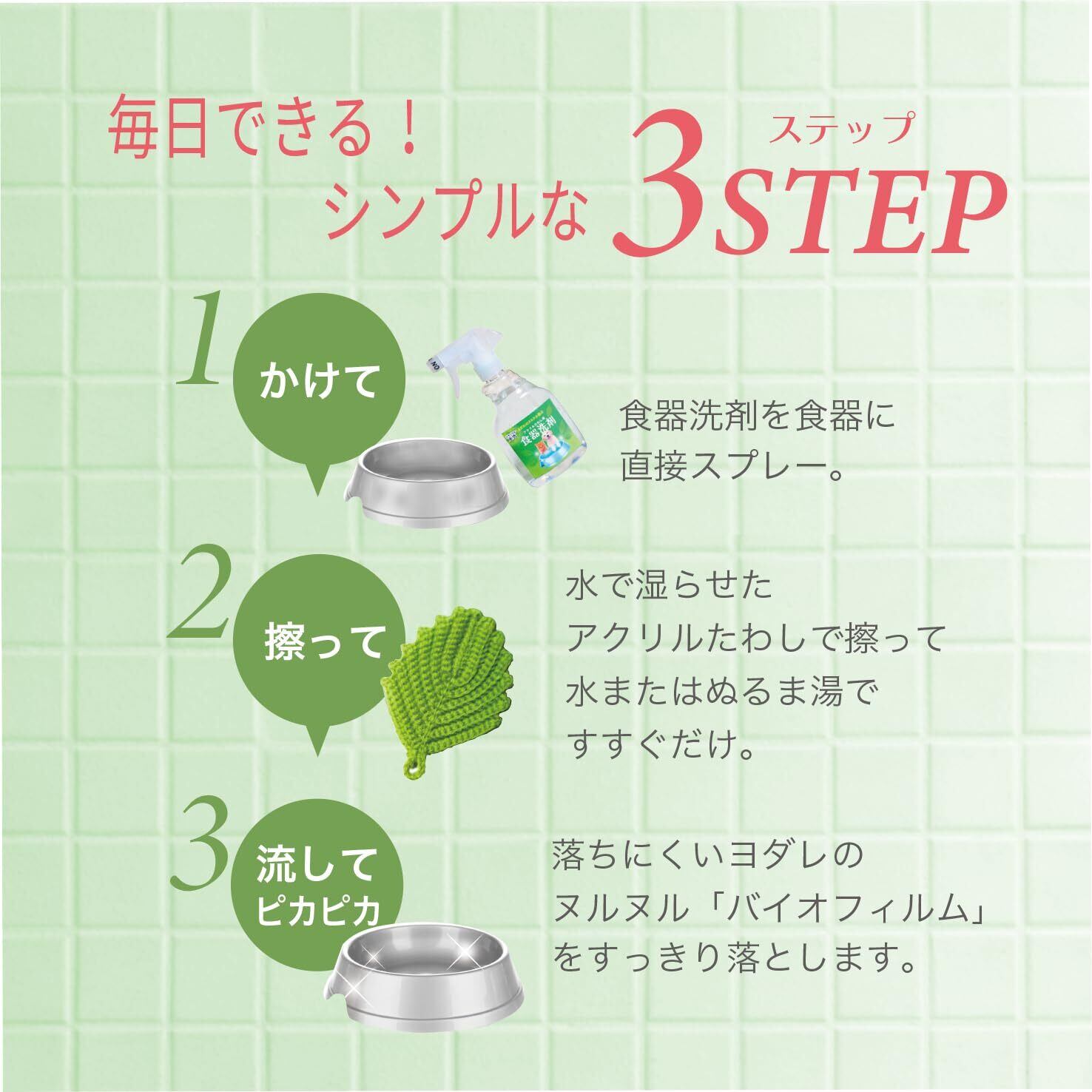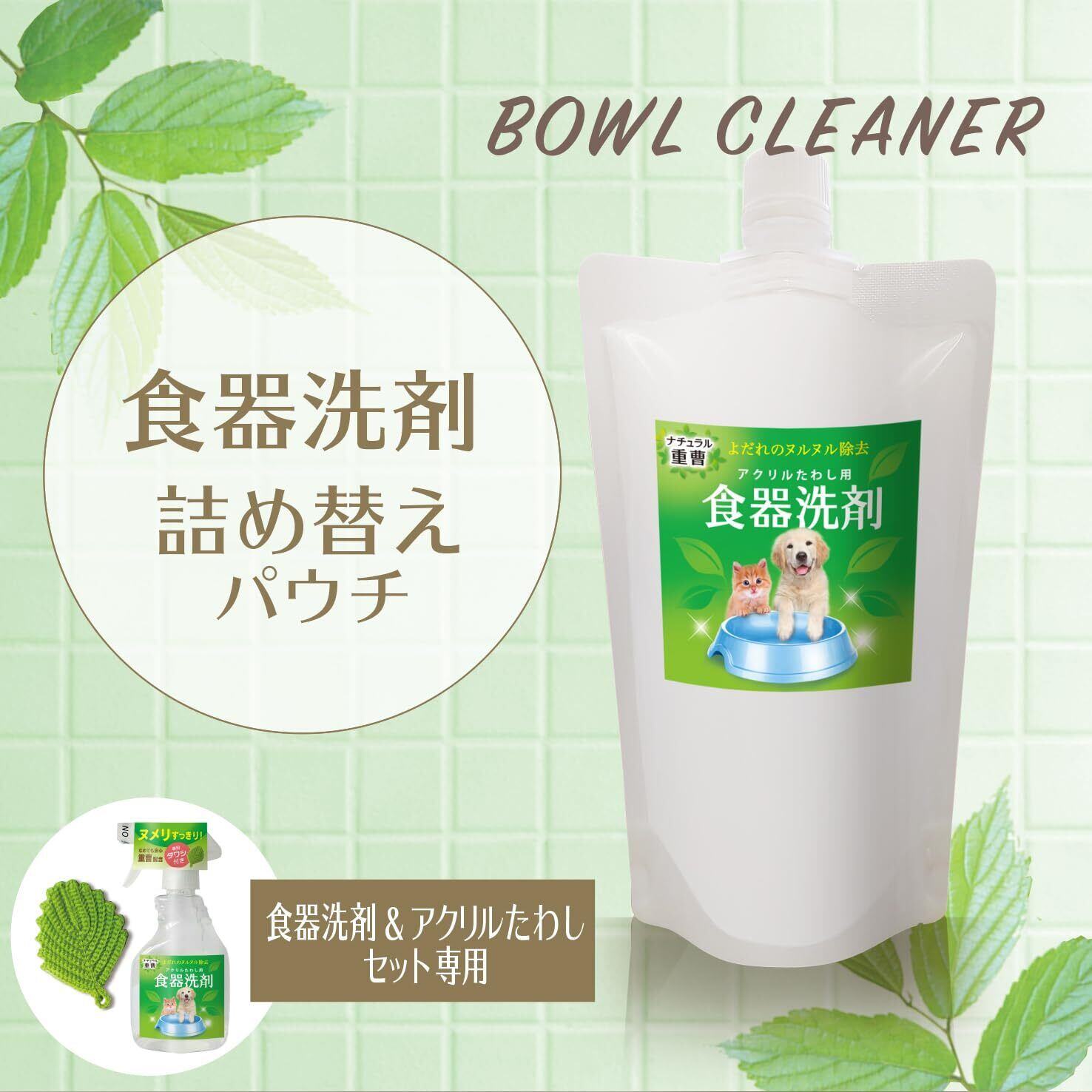 犬猫用食器用洗剤の詰め替え用です。泡立たないのですすぎも簡単。お皿に残ったヌメリも取り除くことができます。重曹の消臭効果で、ヨダレのニオイや水臭さも解消。すべて自然素材なので、洗剤がうっかり残ってペットが舐めてしまっても安心です。 ※2022年3月より製品パッケージの変更あり パウチタイプに変更になっております。