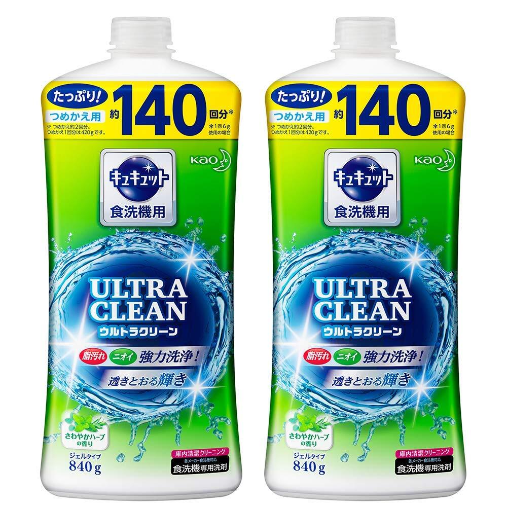 キュキュット Kyukyutto 【まとめ買い】 さわやかハーブの香り ウルトラクリーン 食器用洗剤 食洗機用 詰め替え 840g × 2個