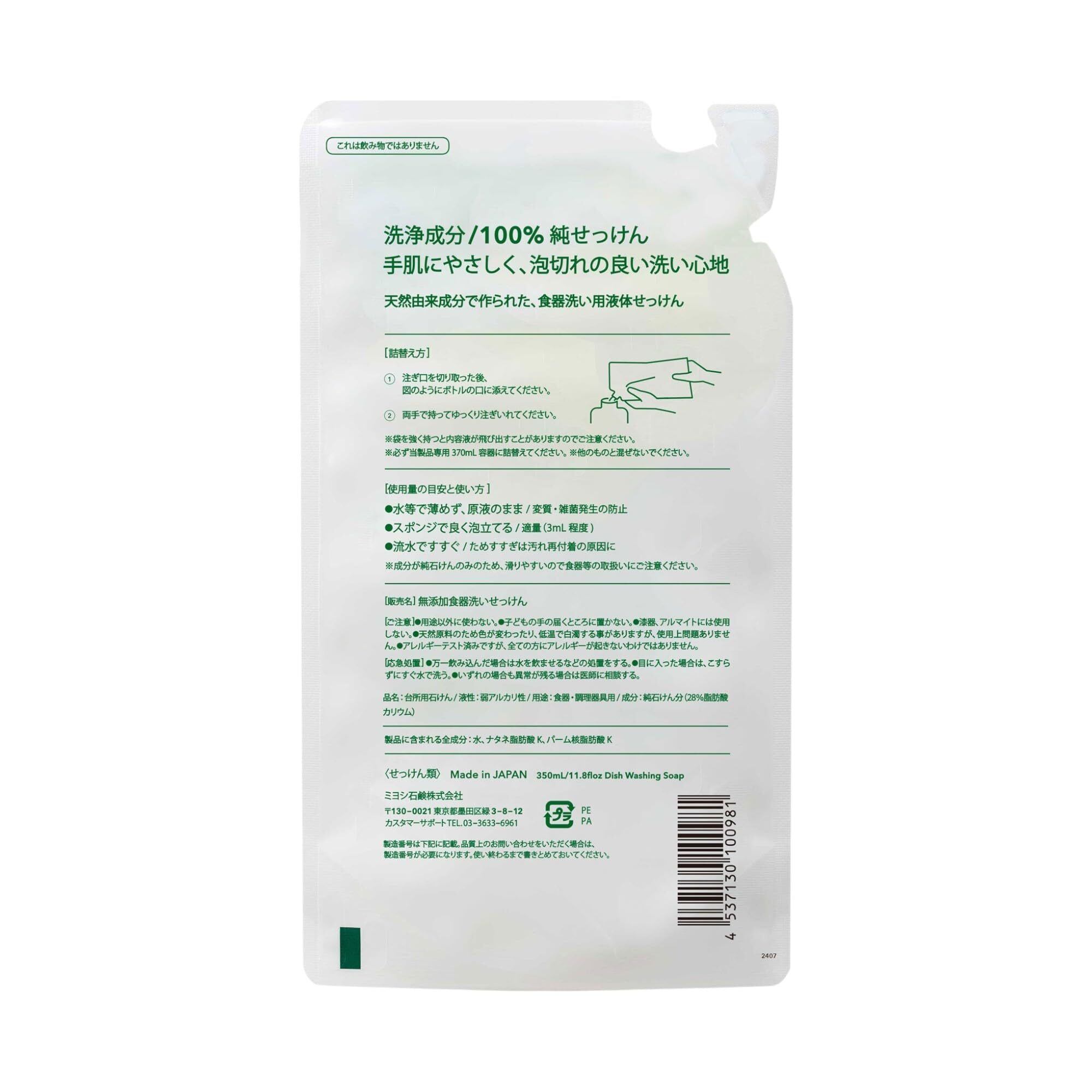 ミヨシ石鹼 無添加 食器洗いせっけん 本体 370ml + 詰め替え 350ml 合成界面活性剤・香料・着色料・防腐剤 不使用