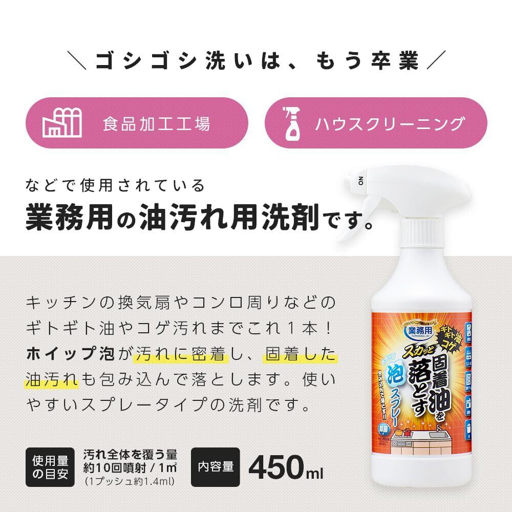 【スカッと固着油を落とす泡スプレー】ハウスクリーニング屋さんが使っている業務用洗剤!ギトギト油やコゲなどの固着油をホイップ泡で包み込んで落とす!換気扇・コンロ・五徳・魚焼きグリル・調理台・鍋などに!除菌効果(※全ての菌を除菌するわけではありません。)【あちこち使えるミニスポンジ】いつでもキレイなスポンジで洗い物!食器洗いに、キッチンシンクに、油汚れにあちこち使えるミニスポンジ。厚み5cmでしっかり泡立ち、水切れも早い!