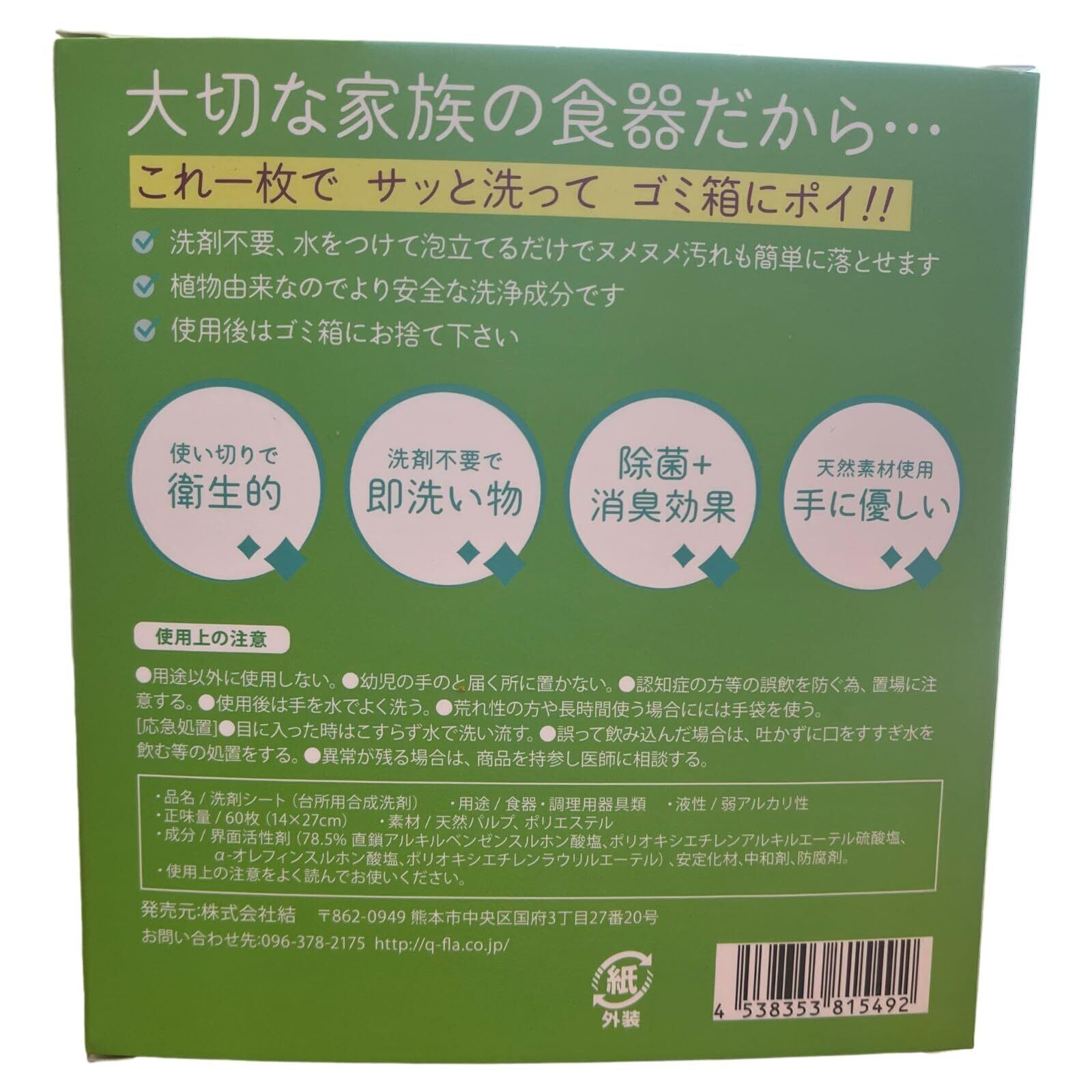 キューフラ(Q-FLA) ペット 食器 洗剤 レギュラー 60枚 使い捨て 食器洗い シート 食器洗い石鹸 食器用洗剤 食器洗いスポンジ ウエス ワイプ キッチン用品 哺乳瓶洗剤 防災用品 防災対策 災害備蓄 非常時持ち出し袋 地震 対策 キャンプ 屋外 815492