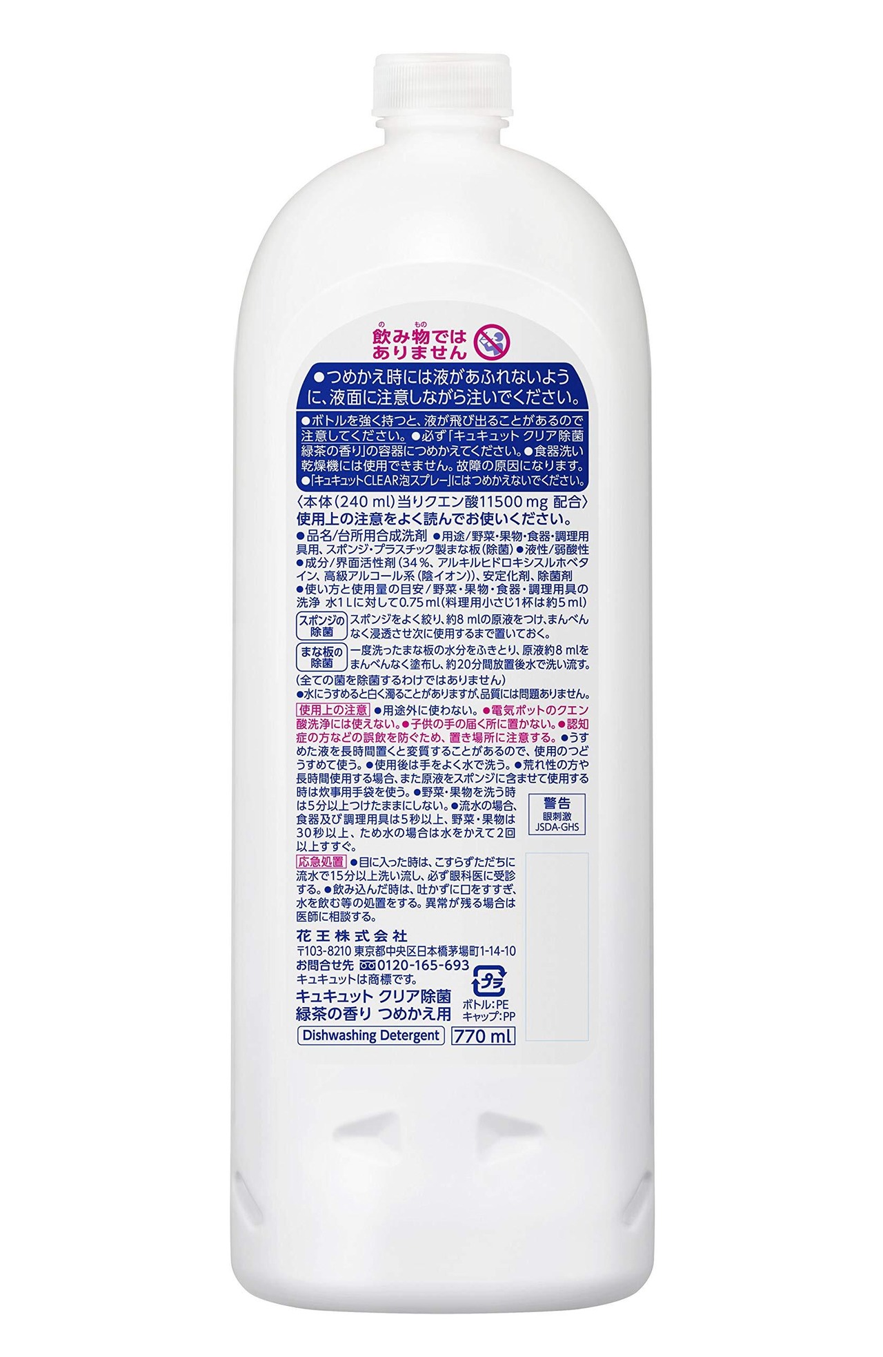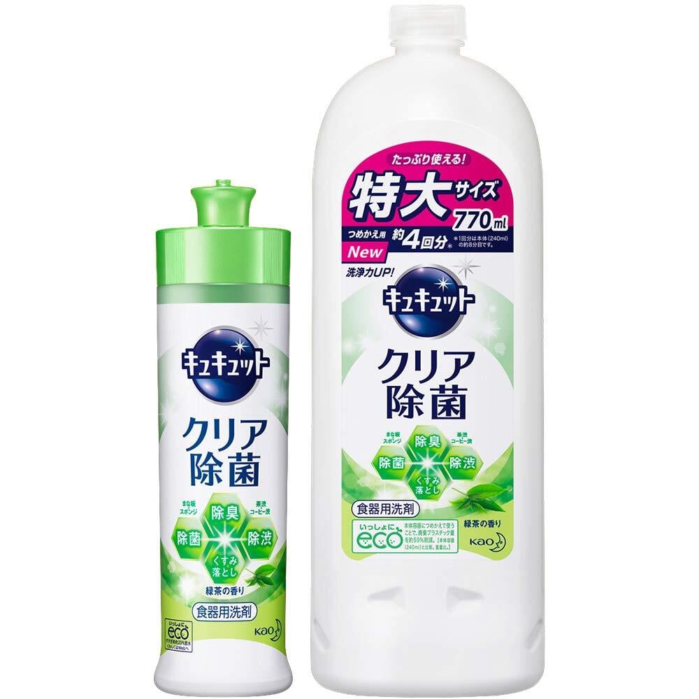 【まとめ買い】キュキュット 食器用洗剤 クリア除菌 緑茶の香り 本体 240ml + 詰め替え 770ml