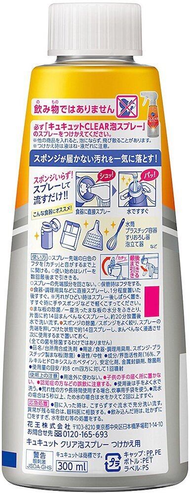 オレンジ香る『花王 キュキュット CLEAR泡スプレー つけかえ用 300ml』を 2個セットにして、迅速にお届けいたします。