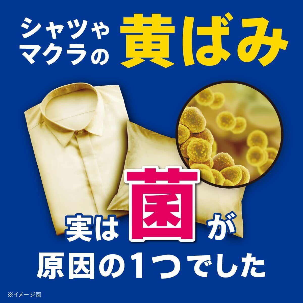 科学x自然 *1 *1 自然の力に着想を得たアリエールバイオサイエンス 洗浄力の限界突破 *2 *2 当社従来品比較 徹底抗菌 *3 のアリエールバイオサイエンス 漂白剤なしでも一発洗浄 *4 *4 P&G調べ。汚れの度合いにより、汚れ落ちの程度は異なります。 徹底抗菌 *3 *3 すべての菌の増殖を抑えるわけではありません。 エリソデ汚れも落ちる進化した洗浄力 洗浄前 洗浄後 イメージ 今までごまかしていたニオイを発生から防ぐ *2 枕の皮脂臭 加齢臭 自然からヒントを得た洗浄&抗酸化成分配合 洗濯洗剤