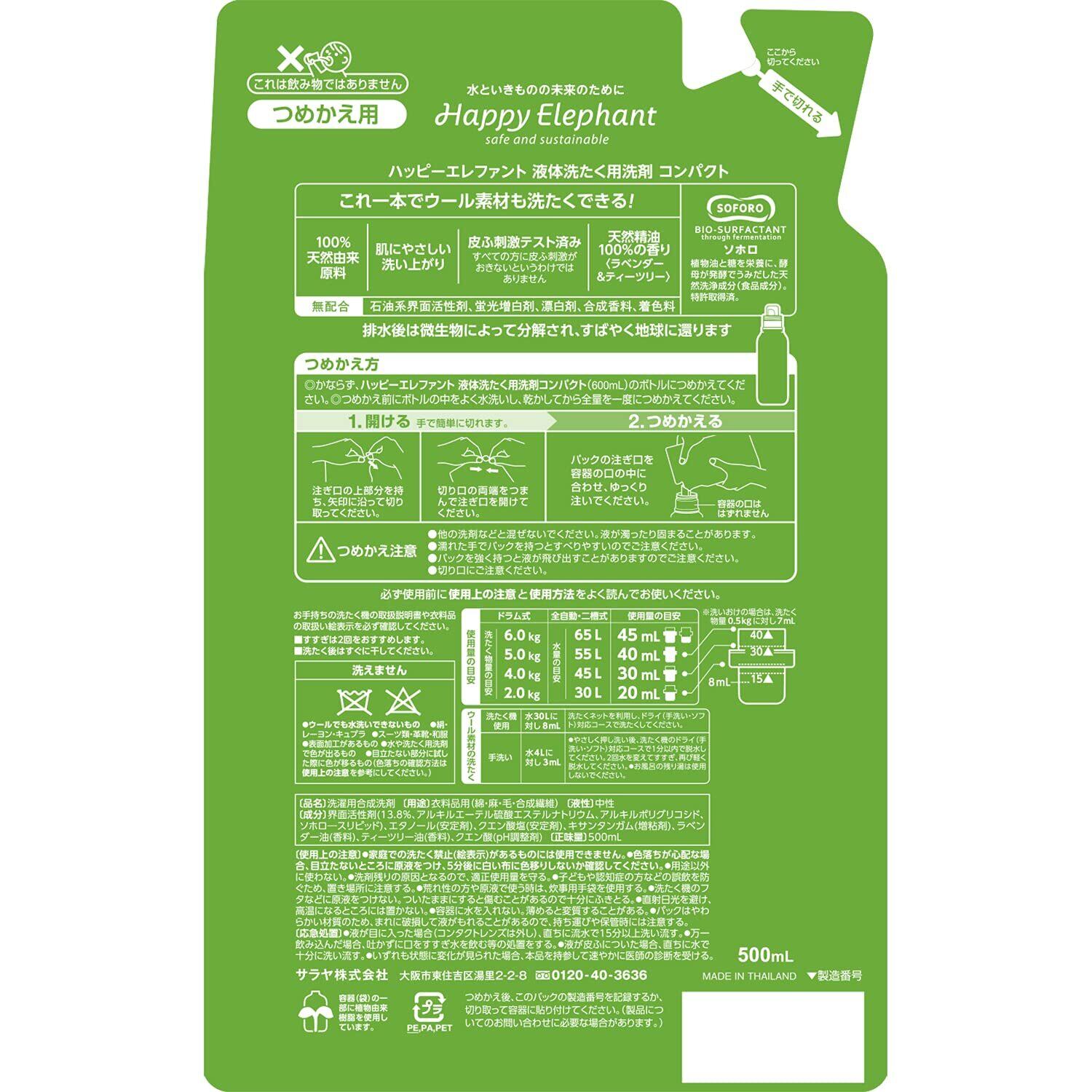 サラヤ Happy Elephant ハッピーエレファント 液体洗たくコンパクト 詰替 1500ml(500ml×3個)