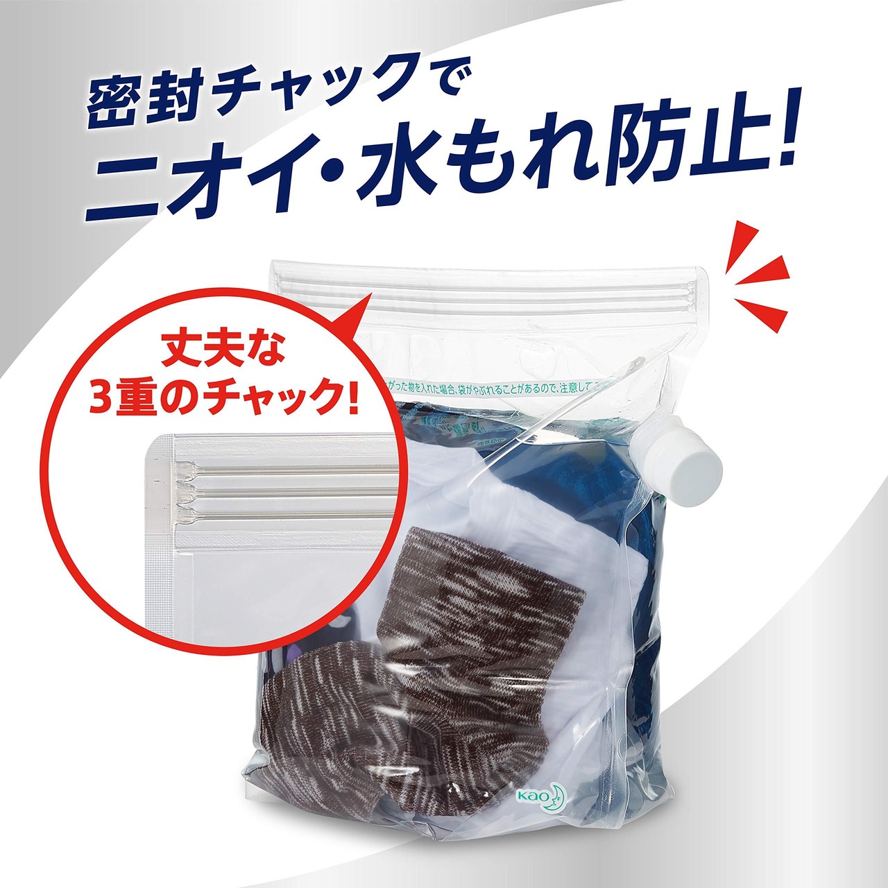 場所を選ばず、どこでも簡単にお洗たくができるお洗たく専用袋(ワンパックアタックZERO3袋付き)キャップ付きですすぎもラクラク。