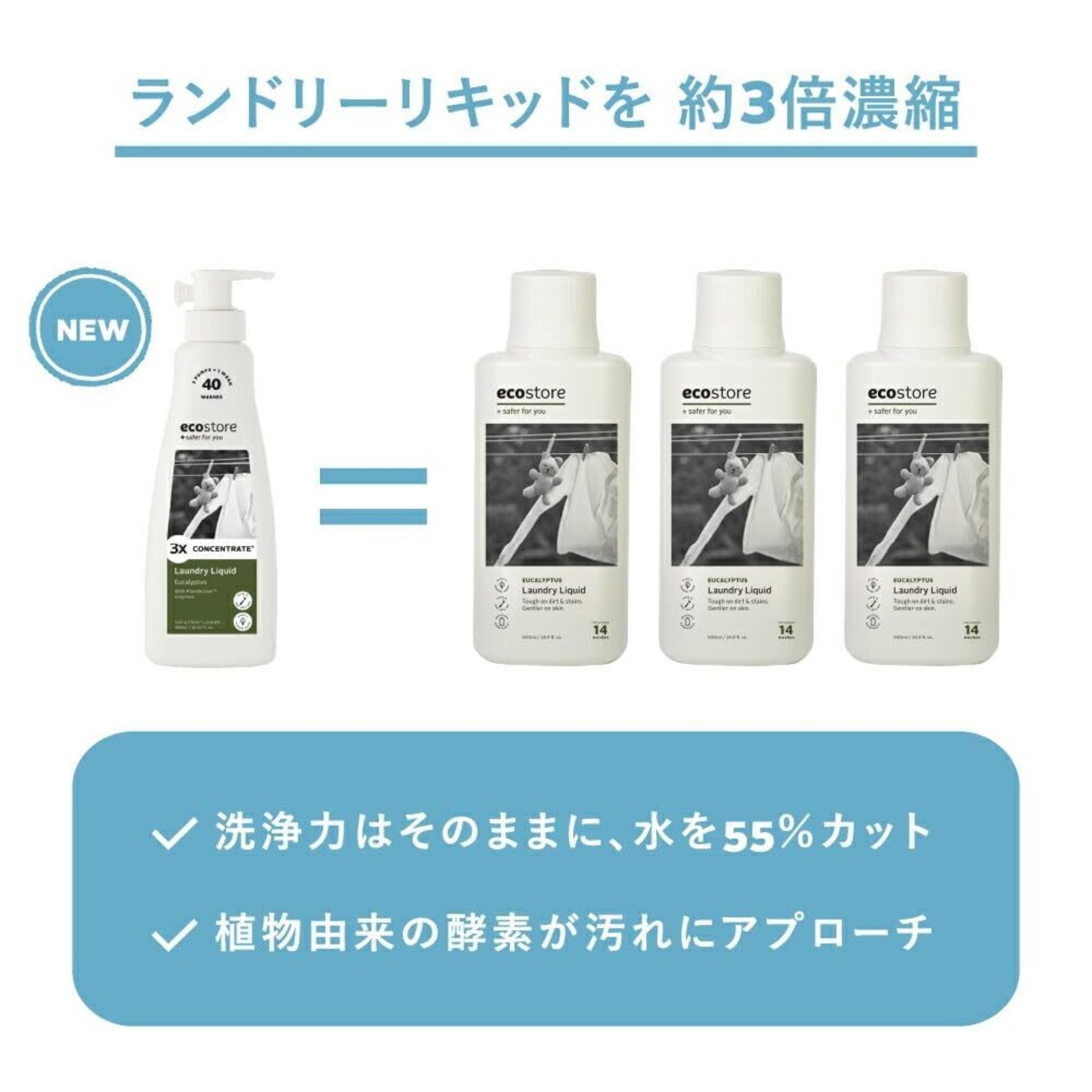ecostore(エコストア) ランドリーコンセントレートポンプ 【ユーカリ】 480mL 洗濯洗剤 3倍濃縮 洗剤 液体 植物由来 肌にやさしい