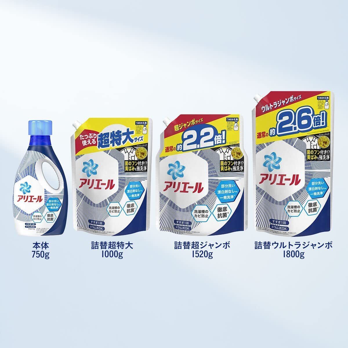 【まとめ買い】 アリエール バイオサイエンス 洗浄力の限界突破 洗濯洗剤 液体 詰め替え 超ジャンボ 1520g (約2.2倍) × 2個 クリアグリーン