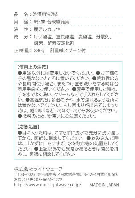 ◆「一日中お肌に触れている衣類こそ、やさしく洗い上げたい。」 従来品『バジャン』は、肌トラブルで悩む方の声がきっかけで開発されました。 ◆合成洗剤でも、石けん洗剤でもない、スキンケア発想の洗濯剤。 2002年発売以来、たくさんのリピーターに支持されています。 ◆ニューバジャンは界面活性剤も石けん成分もゼロ。 重炭酸ナトリウムなどの無機塩を主成分とした洗濯剤です。 その無機塩系洗浄剤には、衣類を洗ううえで大きな弱点があります。 それは「再汚染防止機能」がないこと。 この機能がないと、汚水となった洗濯水によって再汚染が起こり、きれいに洗うことができません。 ◆従来品のバジャンは高洗浄に不可欠なこの機能を、無機塩系洗浄剤で初めて実現した、 やさしさと高洗浄力を両立したはじめての洗濯剤です。 ◆さらに、酸化臭のもとになる皮脂やたんぱく質を高洗浄で洗い上げるから部屋干ししても臭いません。 肌に付くほど強力で、呼吸から体内に取り込まれる揮発性化学物質である合成香料はもちろん、 天然香料も使わない無香料の洗濯剤です。 ◆使用している成分に残留性がないため、1回のすすぎで完了。 ◆ベビーウェアやペットウェアのお洗濯にも最適です。 ◆そして、カビのエサになる有機物の成分がほとんどなく、洗濯槽のカビに悩まされることがありません。 ◆また、成分の9割以上が生分解を必要としない無機成分。そのまま自然に還ります。 ◆今回、溶け残りを大幅改善し、ニューバジャンとしてリニューアルしました。 界面活性剤ゼロ生活を、どうぞお試しください。 ≪界面活性剤不使用洗濯洗浄剤≫ 【液性】弱アルカリ性 【成分】けい酸塩、重炭酸塩、炭酸塩、分散剤、酵素、酵素安定化剤 【付属品】紙製計量スプーン