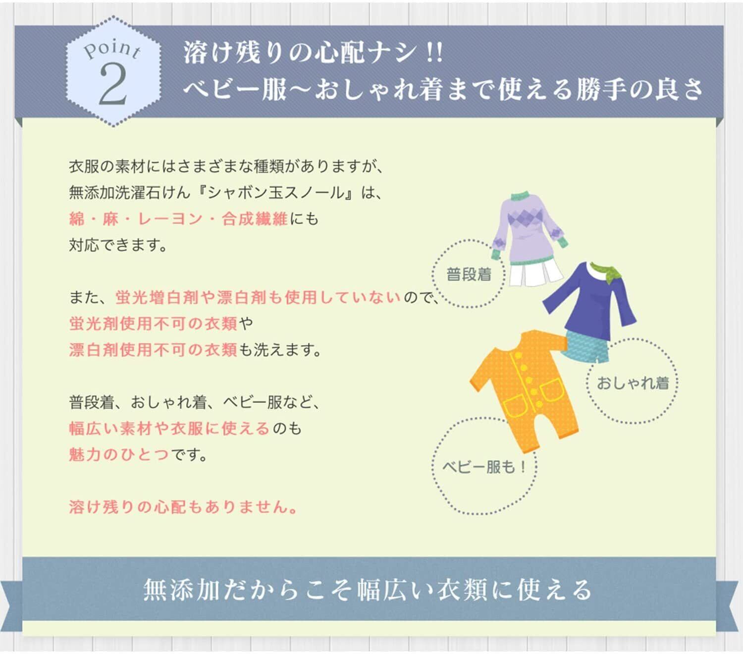 蛍光増白剤、香料、着色料、LASなどの合成界面活性剤は使用していない無添加です。