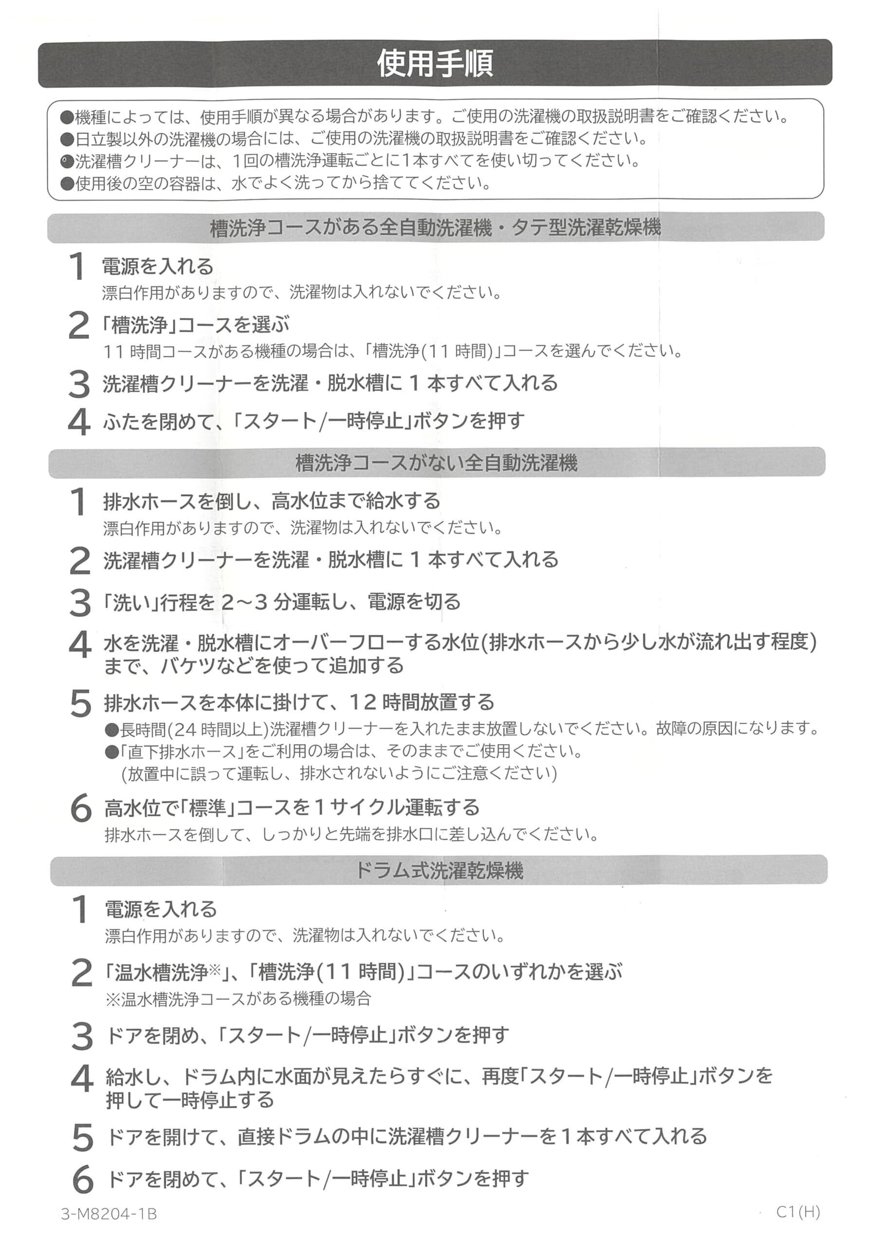 ●気になる洗濯槽の裏側の汚れ対策に、ステンレス槽・プラスチック槽にも使える「洗濯槽クリーナー」●腐食(サビ)防止対策●全メーカー使用可能●【仕様】●内容量:1500ml (1回分)●本体寸法[mm]:高さ230×幅125×奥行100●※浄化槽の性能が悪化するおそれがあるため、廃液は浄化槽へ流さないでください