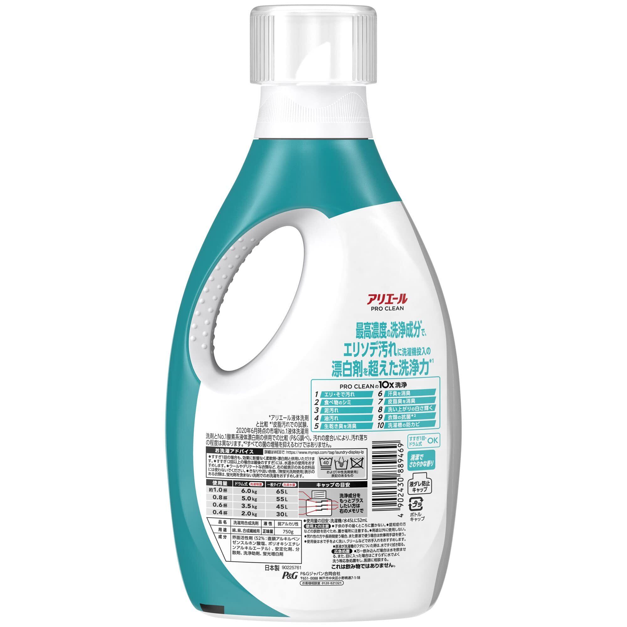アリエール プロクリーン 洗濯洗剤 液体 エリソデ汚れに洗濯機投入の漂白剤を超えた洗浄力 本体 750g