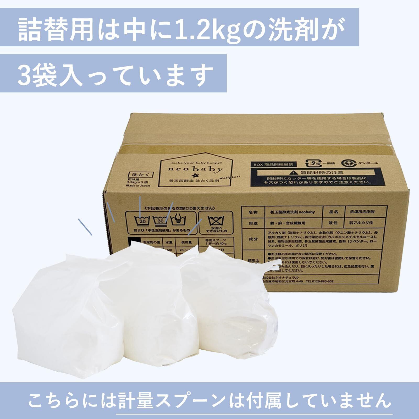 [洗濯洗剤] neobaby ネオベビー 善玉菌酵素洗たく洗剤 粉 国産 無添加 オーガニック ベビー 部屋干し ドラム式洗濯機可 ネオナチュラル 1.2kg レフィル3個セット