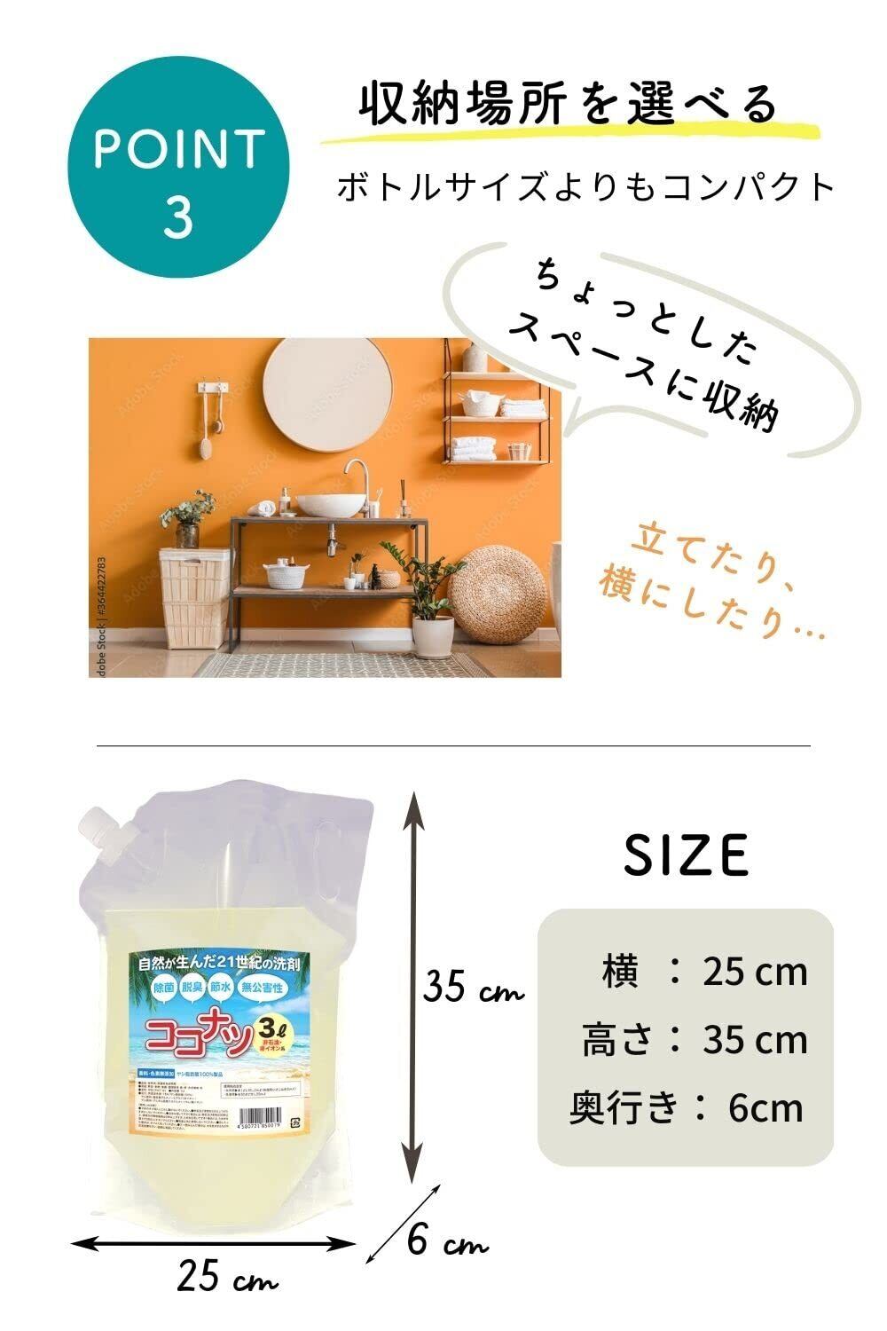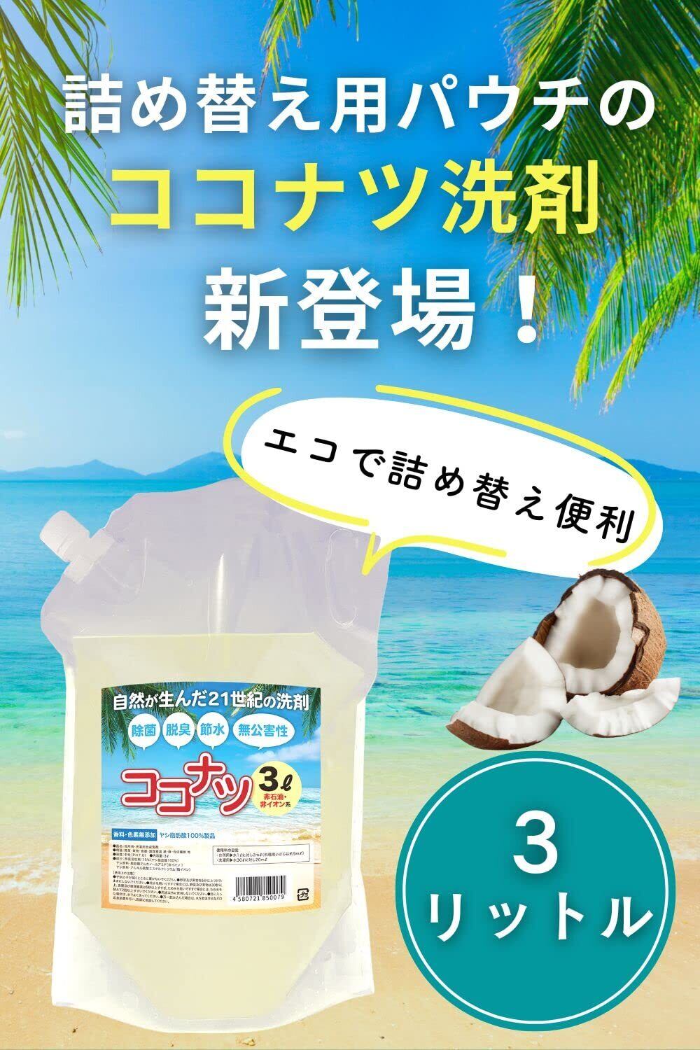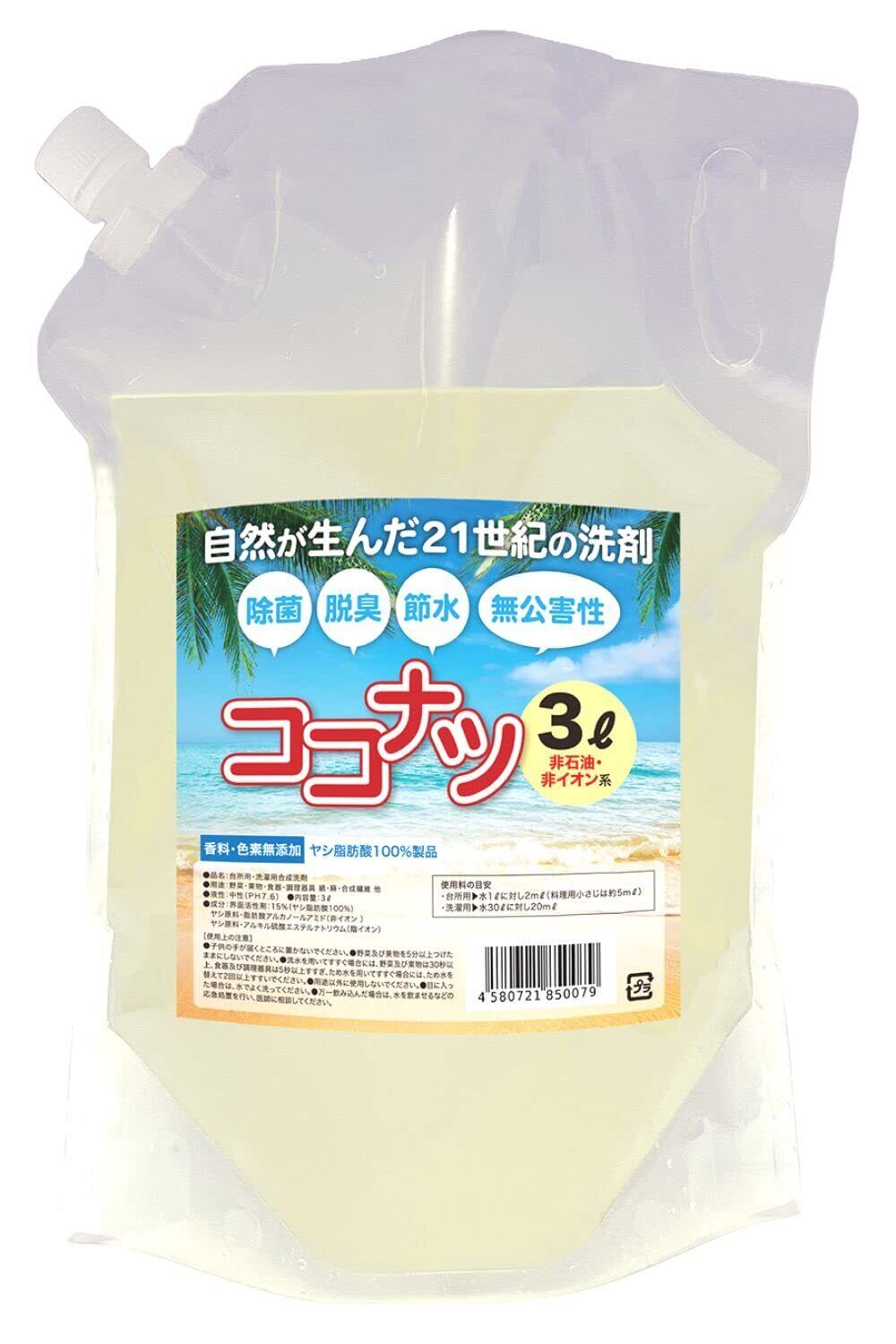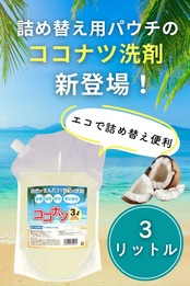 ココナツ洗剤 詰め替えしやすいコンパクトパウチ 3リットル 哺乳瓶 赤ちゃん 洗濯洗剤 無添加 無香料