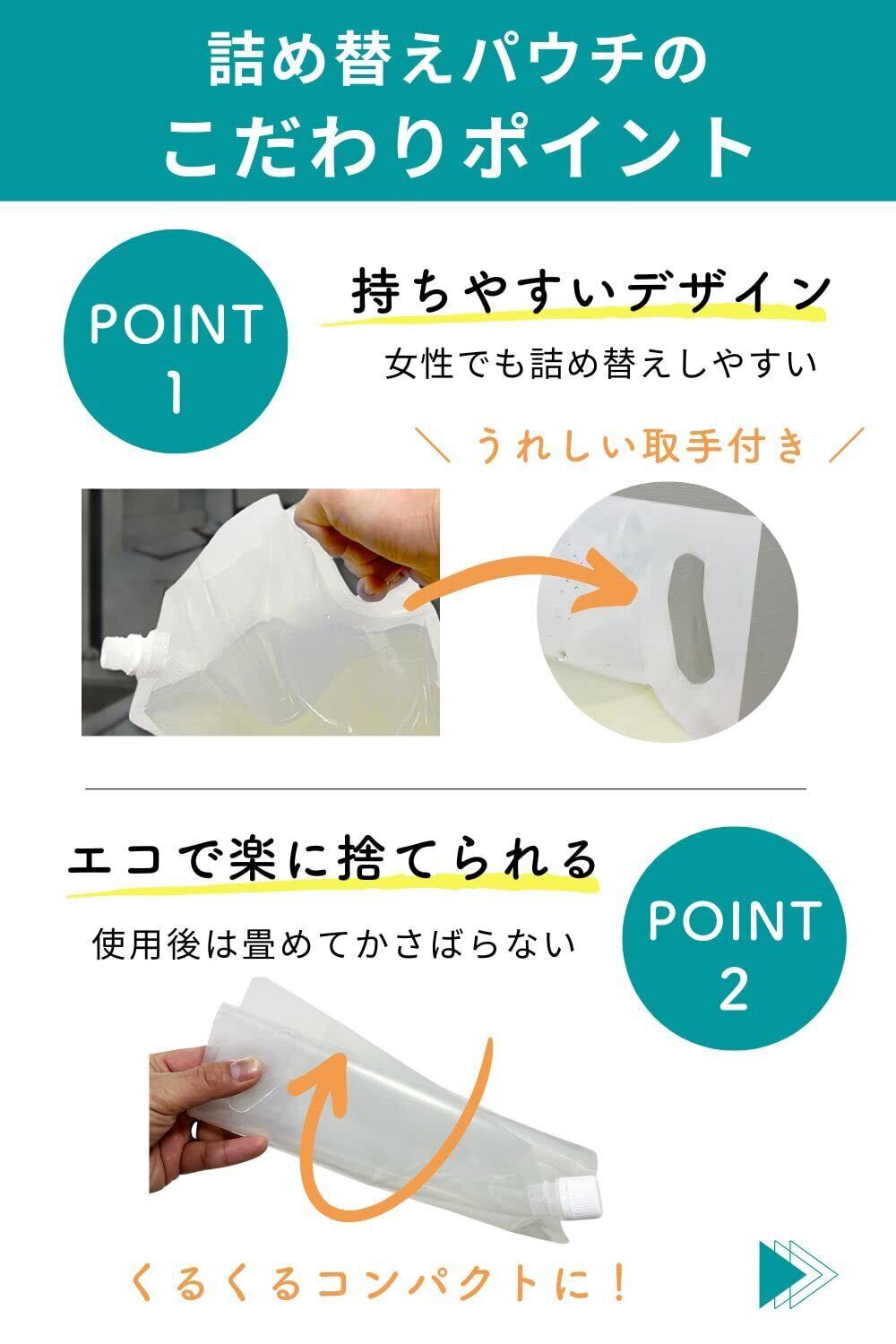 【女性でも持ちやすい】パウチには取手がついており、詰め替え時のこぼれを防ぎます。
