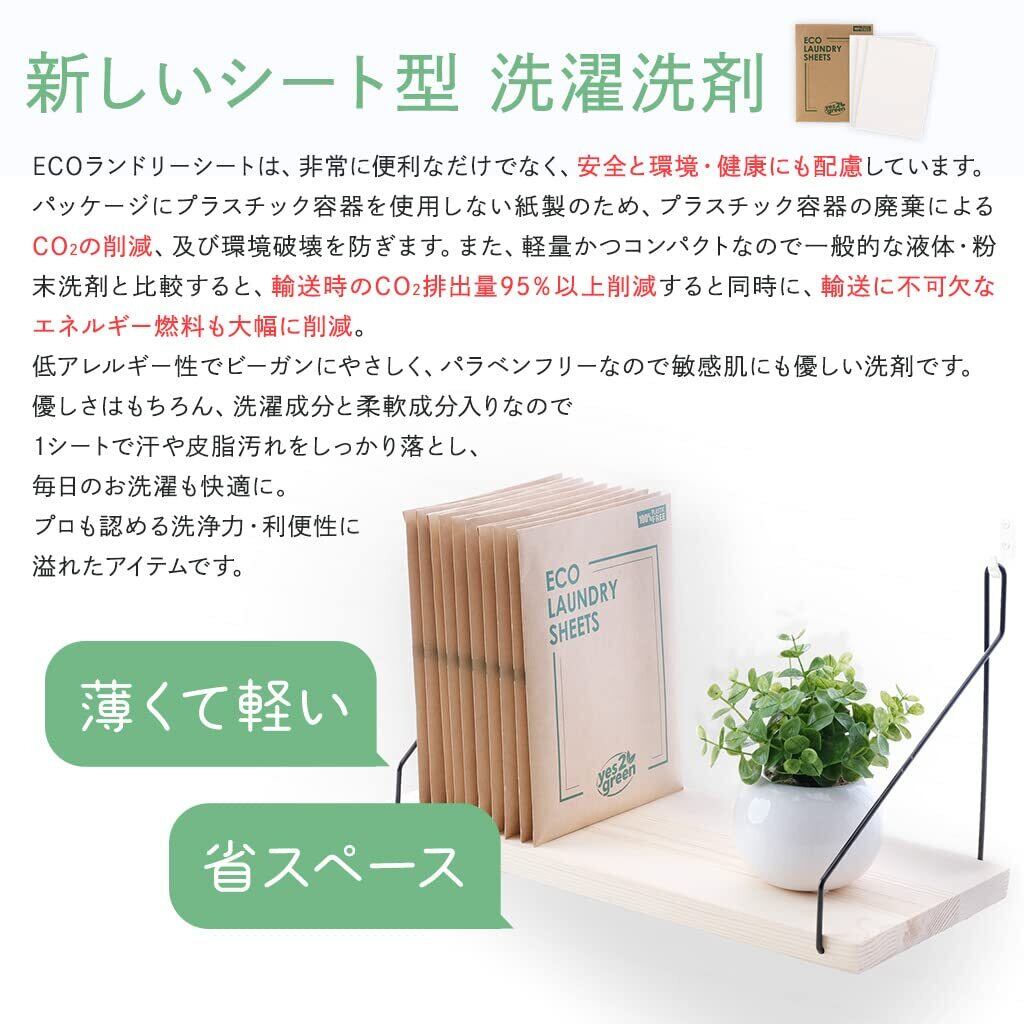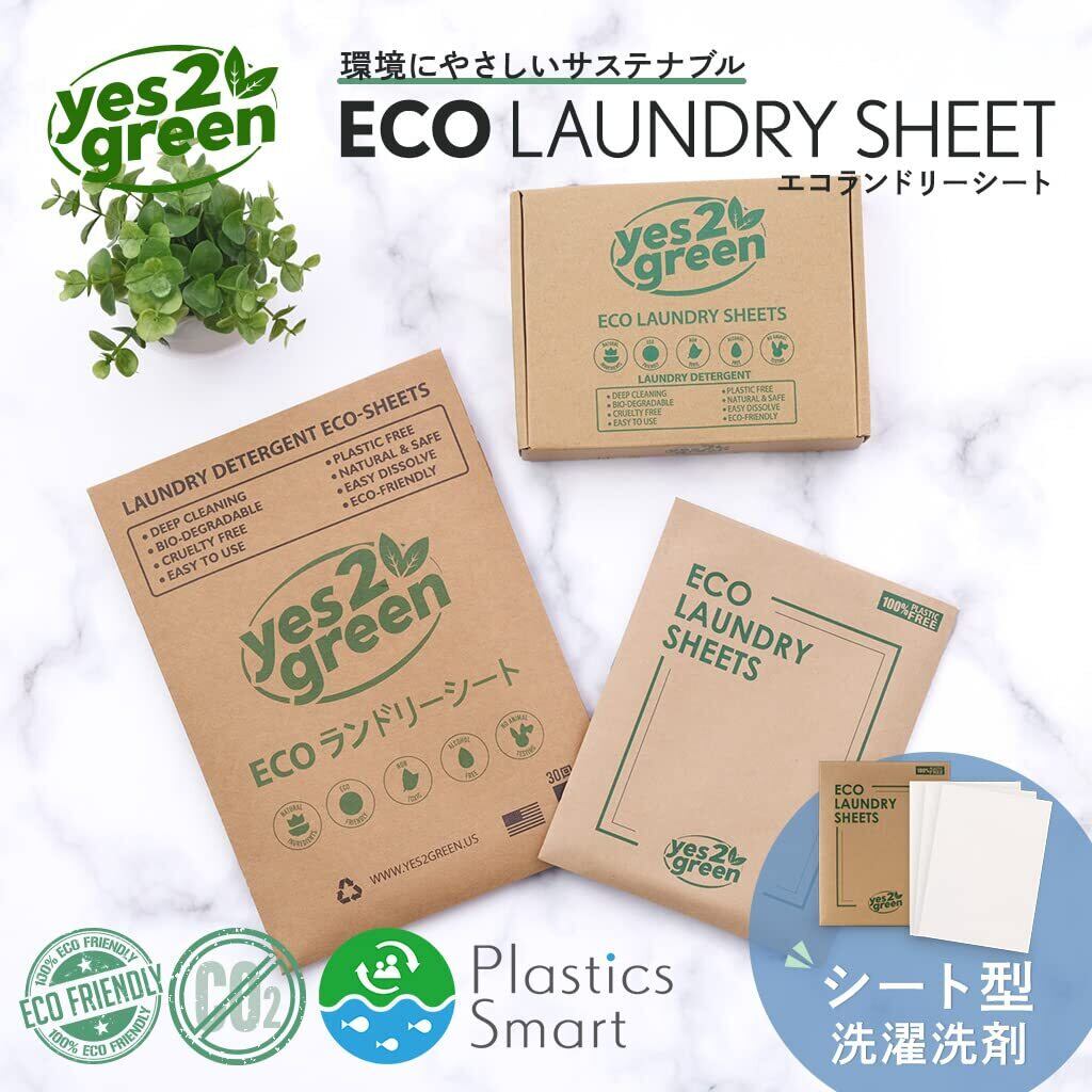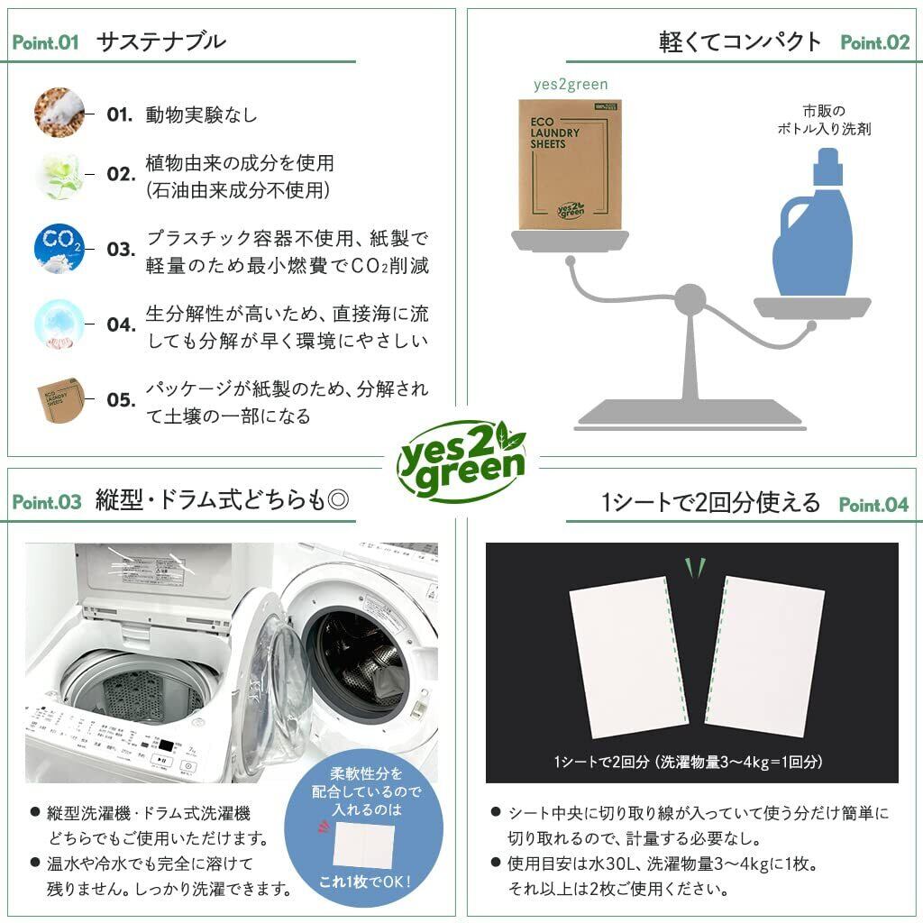 yes2green ECOランドリーシート 洗濯シート 洗濯洗剤 紙洗剤 SDGs サステナブル エコ 赤ちゃん 低アレルギー性 パラベンフリー 柔軟剤 旅行 (30枚 60回分入 4560266431537)