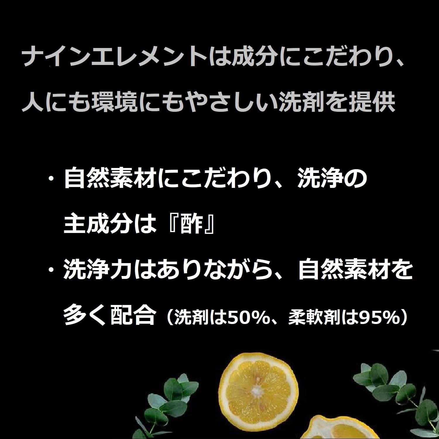 成分にこだわり、健康的な洗浄習慣をお届けするナインエレメント。成分は9つまでしか使わず、人にも環境にもやさしいことにこだわるブランド。●酢の力を活用し、衣類の汚れ、シミ、においを洗浄●香りは100%エッセンシャルオイル●合成保存料、着色料、増白剤、人工香料不使用●USDA認証:50%自然素材使用●酢のにおい、エッセンシャルオイルの香りは乾燥後ほとんど残りません●酸性洗剤のため、塩素系漂白剤とは一緒に使用できません●レーヨンには使用できません 原材料・成分 界面活性剤(17.2%、直鎖アルキルベンゼンスルホン酸ナトリウム、ポリオキシエチレンアルキルエーテル)、加工助剤(水)、加工助剤(クエン酸)、安定化剤(プロピレングリコール)、pH調整剤(クエン酸ナトリウム)、香料、酢