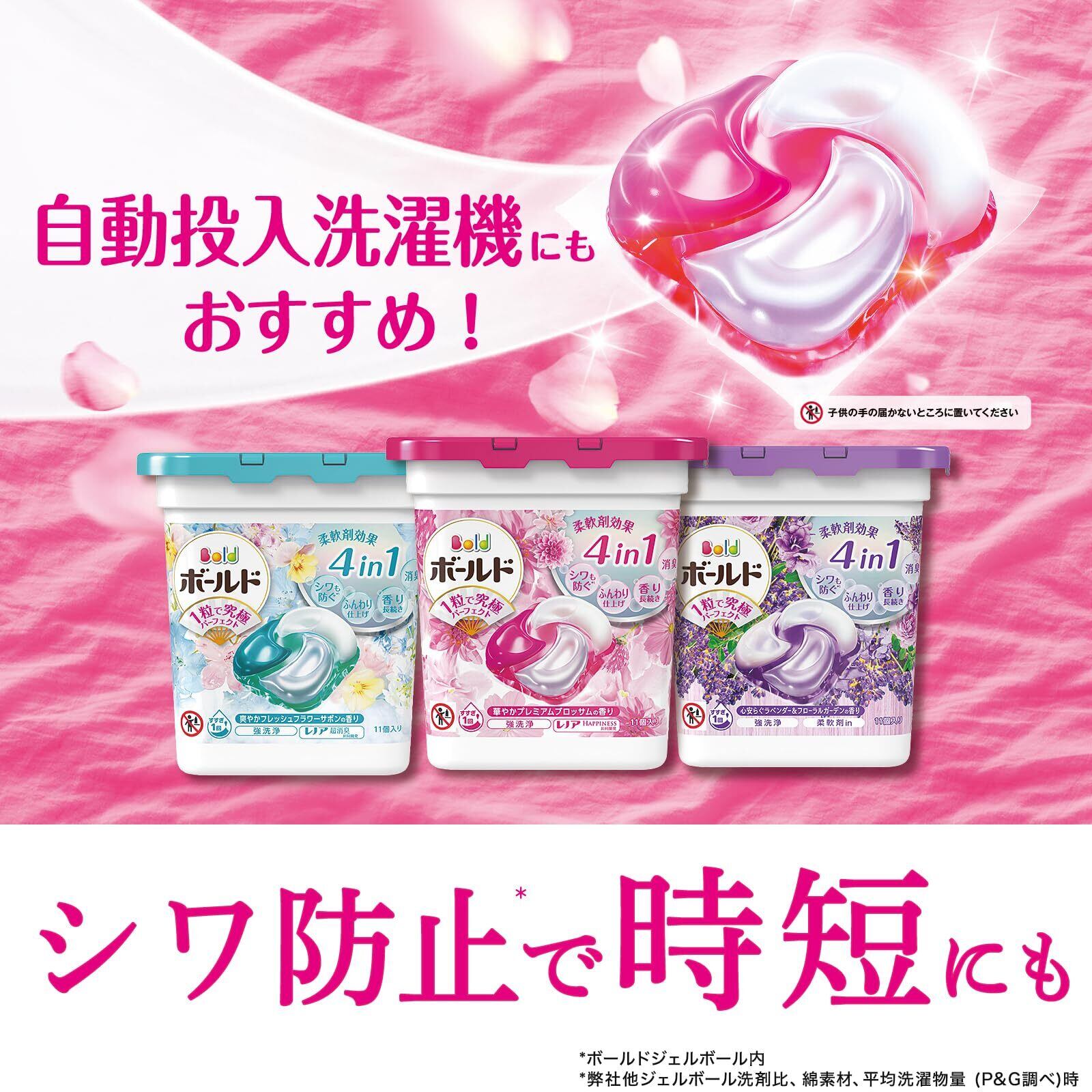 洗濯洗剤 レノア 超消臭共同開発 New 4 in 1 ウルトラジャンボサイズ!通常の約4.8倍!※ みずみずしい爽やかフレッシュフラワーサボンの香り4つの柔軟剤効果in シワも防ぐ *1 ふんわり仕上げ強洗浄シワも防ぐ*1 アイロンがけが楽に!*1ふんわり仕上げ 驚きの柔らかさ香り長続き 着ている間も華やか消臭成分2倍濃縮*2※ボールドジェルボール本体(11個入り)対比*1 他ジェルボール洗剤比、綿素材、平均洗濯物量(P&G調べ)時 *2 当社液体洗剤比
