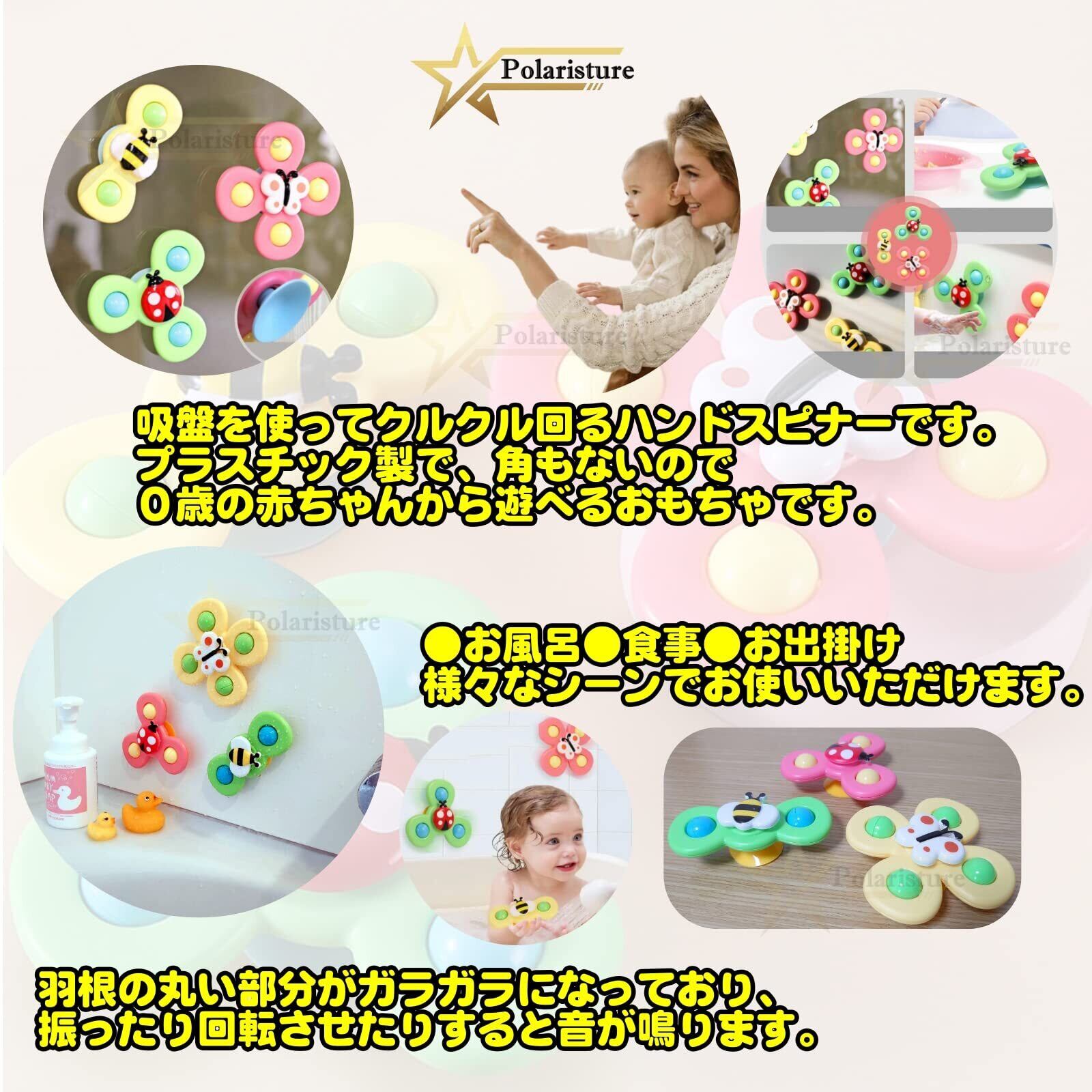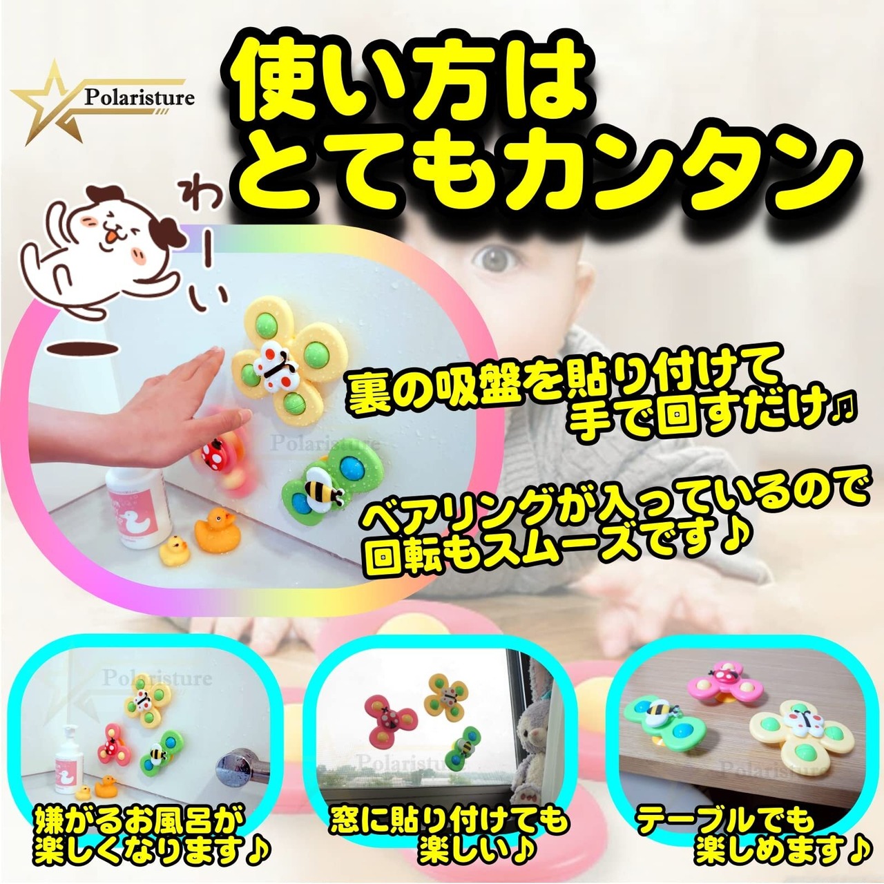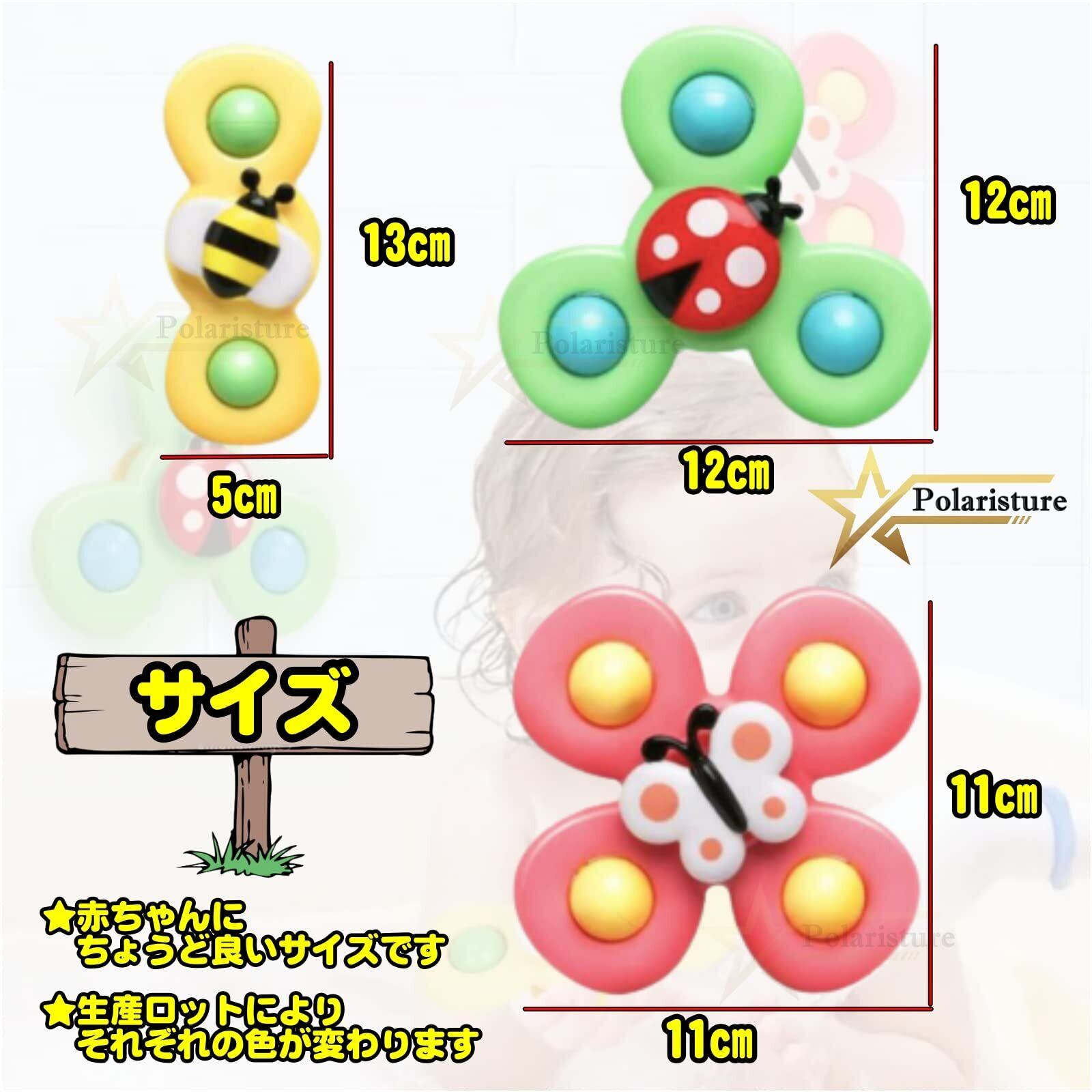 Polaristure 【箱入り正規品】くるくるスピンフレンド ハンドスピナー 赤ちゃん お風呂 おもちゃ 0歳 ベビーカー ベビーサークル ゲートにも取付可能 【有害物質検査実施済み】 蝶/てんとう虫/ハチ 3点セット 箱入り プレゼント向け (パッケージ箱付き 3個入)