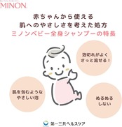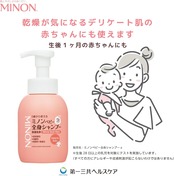 〈ご注意〉 ● 必ず使い切ってから「ミノンベビー全身シャンプー」ポンプボトルにつめかえて下さい。 ● つめかえ前にボトルの中とポンプをよく洗い、乾燥させてから一度に全量をつめかえて下さい。 ● 他の製品や水を混ぜないで下さい。 ● つめかえ後はボトル容器のキャップをしっかりとしめて下さい。 ● 下部の製造番号を控えておいて下さい。お問い合わせの際に必要な場合があります。 ● 泡が出にくくなった場合は、新しい本体にお取替えいただくことをおすすめします。 ● 肌に異常が生じていないかよく注意してご使用下さい。使用中に、赤み、はれ、かゆみ、刺激、色抜け ( 白斑等 ) や 黒ずみ等の異常があらわれた場合、使用した肌に直射日光があたって同様の異常があらわれた場合は、使用を中止し、 皮ふ科医にご相談下さい。使用を続けると症状を悪化させることがあります ● 傷やはれもの、湿疹等、異常のある部位には使用しないで下さい ● 目に入ったときは、直ちに洗い流して下さい ● 乳幼児の手の届かない所に保管して下さい ● 極端に高温又は低温の所、直射日光の当たる所には保管しないで下さい ● 開封後は早めにご使用下さい