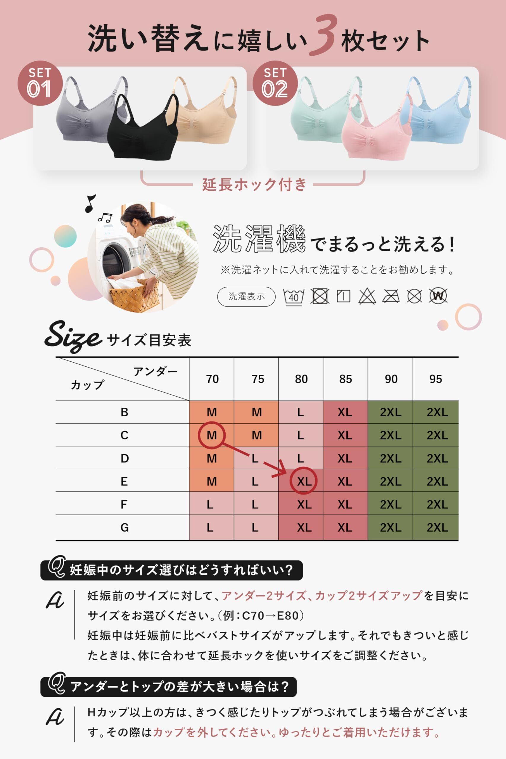 [チャーメイクボディ] 3枚セット 授乳ブラ 垂れ防止 肌に優しい マタニティブラ ストラップオープン 産前 産後 延長ホック付き