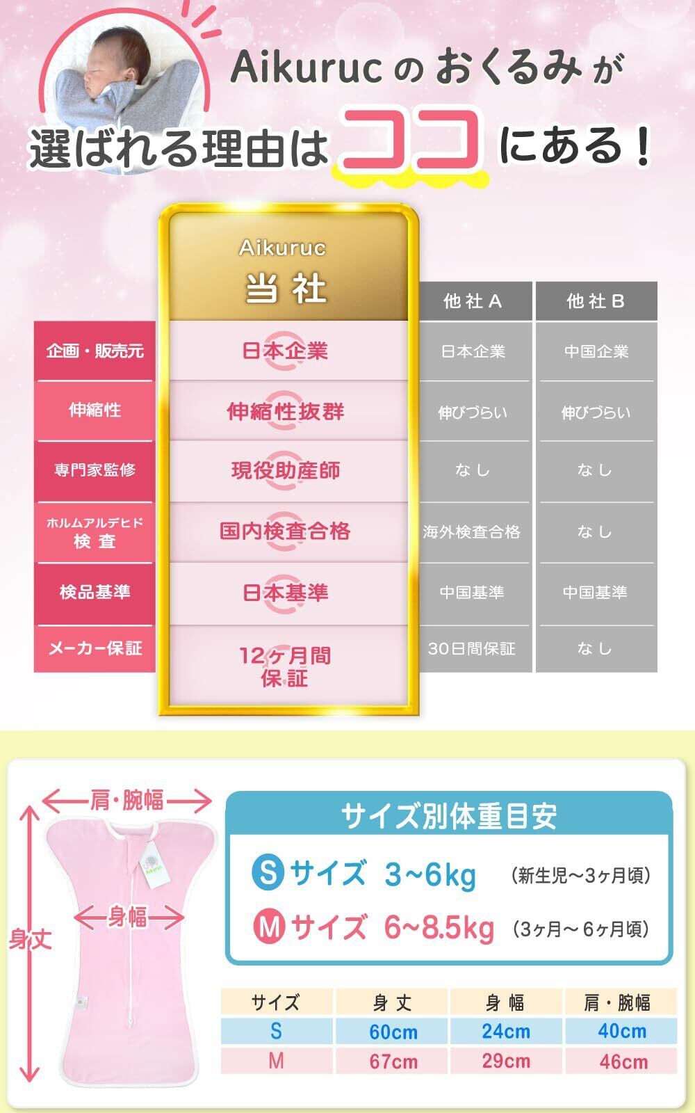 【助産師監修】Aikuruc おくるみ 奇跡のおくるみ 夜泣き対策 綿100% 新生児 ベビー用品 出産祝い (3-6kg)(Sサイズ, ベージュ)