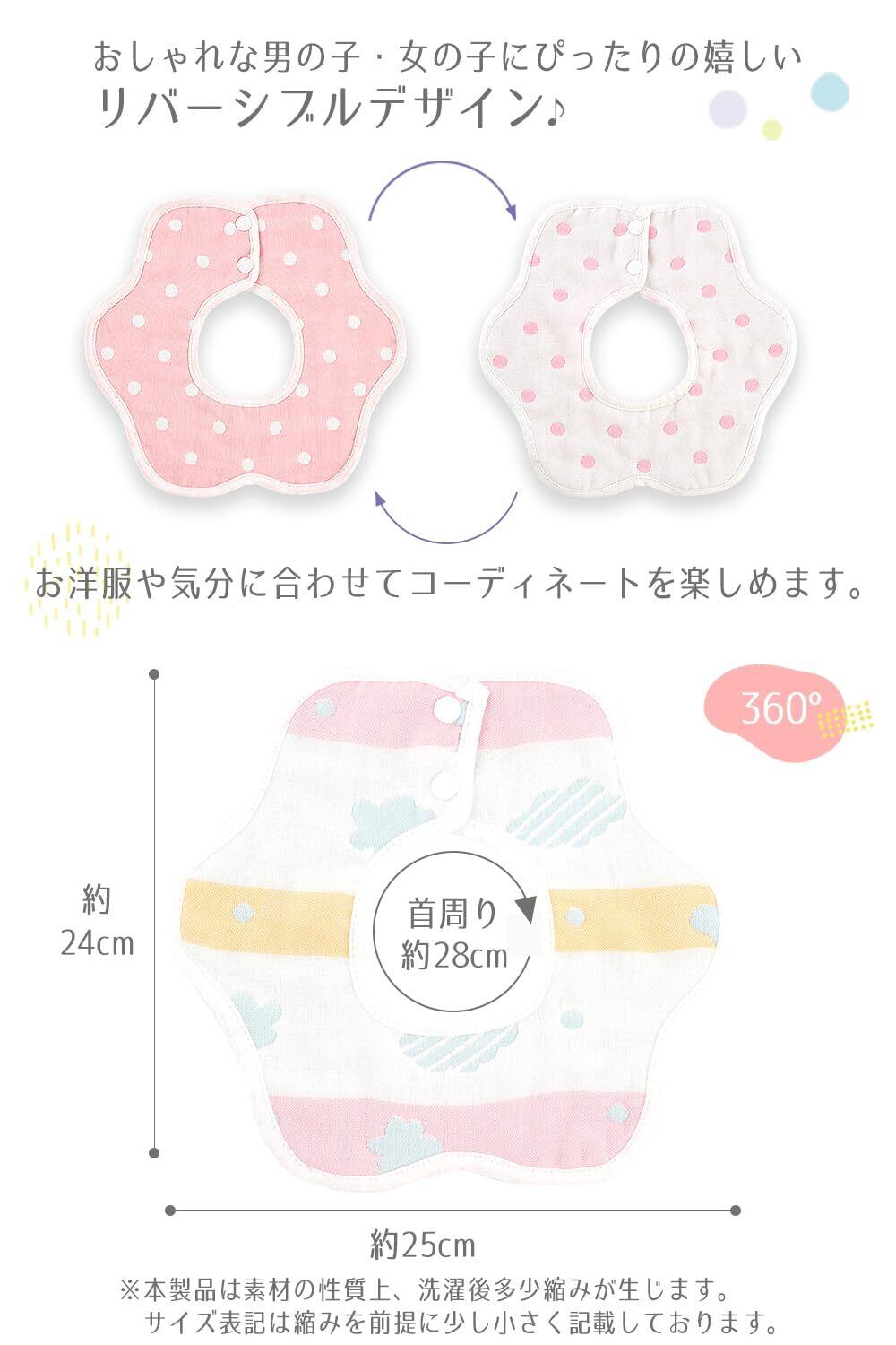 [BMC bib.] スタイ 10枚 セット よだれかけ ビブ 綿100% 柔らかい 6重 ガーゼ 花形 360°