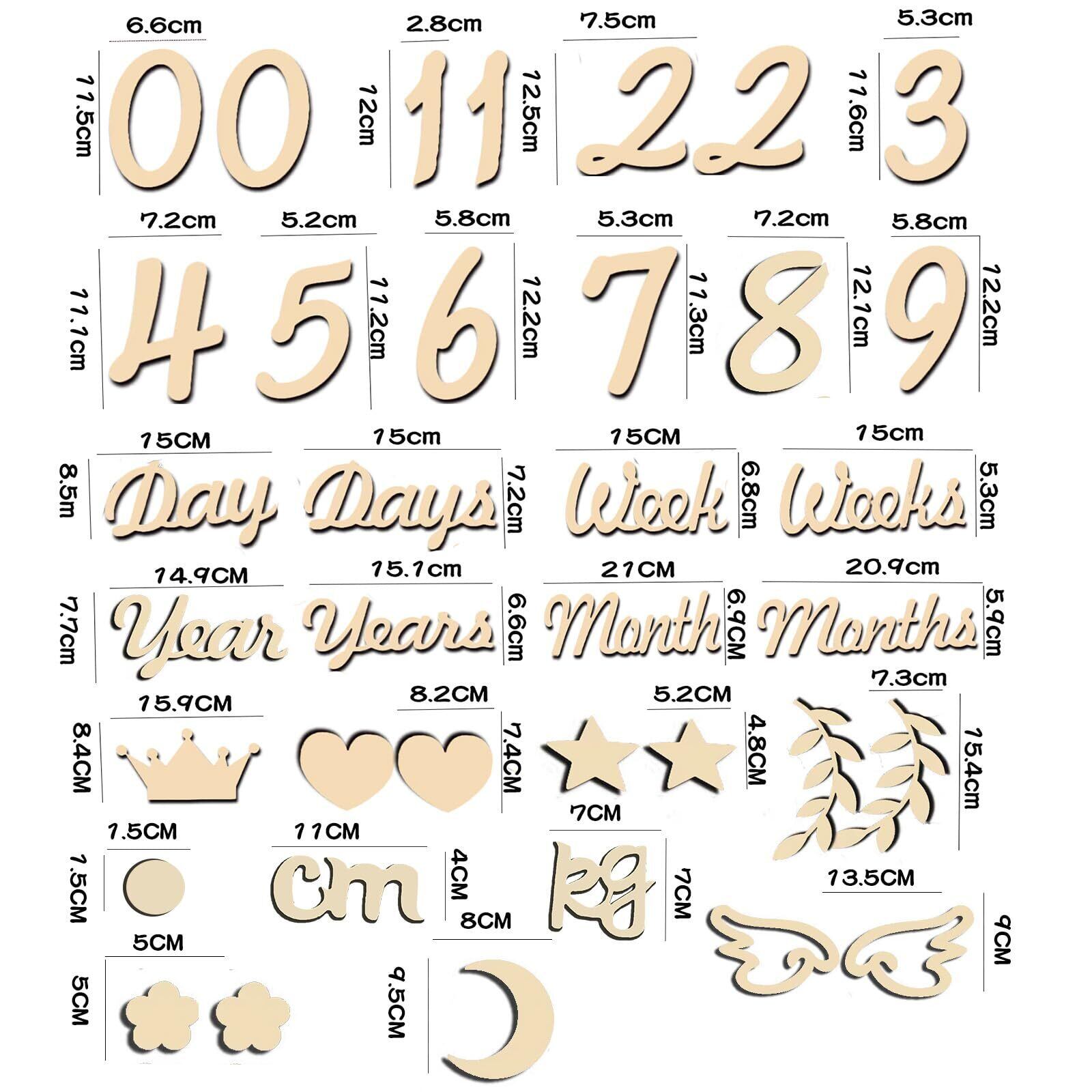 lollipopk 月齢フォト 天然木製 レターバナー マンスリーカード ニューボーンフォト 記念日フォト 成長記録 出産祝い 撮影用 寝相アート 月齢フォトグッズ ベビー用品 新生児 赤ちゃん 飾り付け (36枚 羽)
