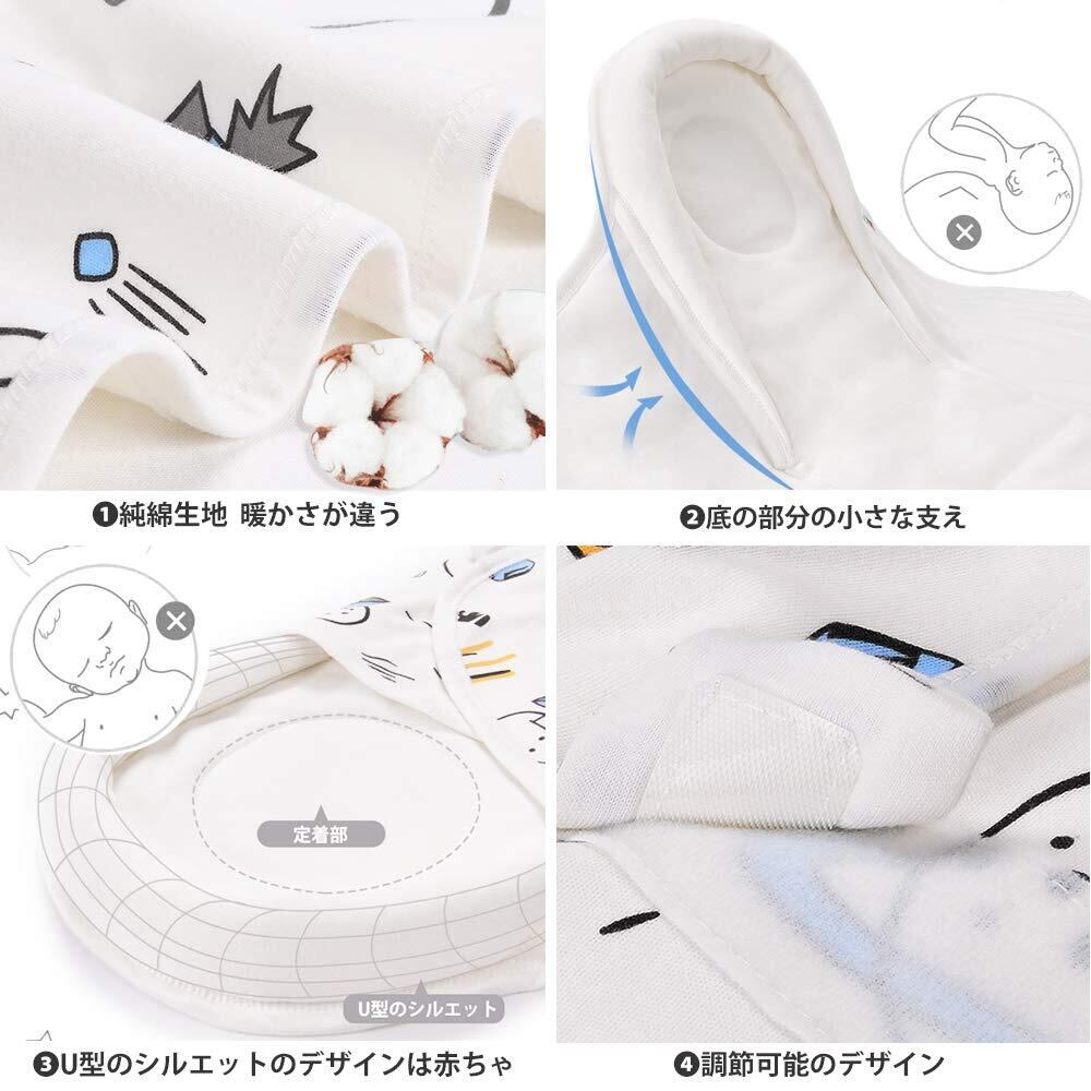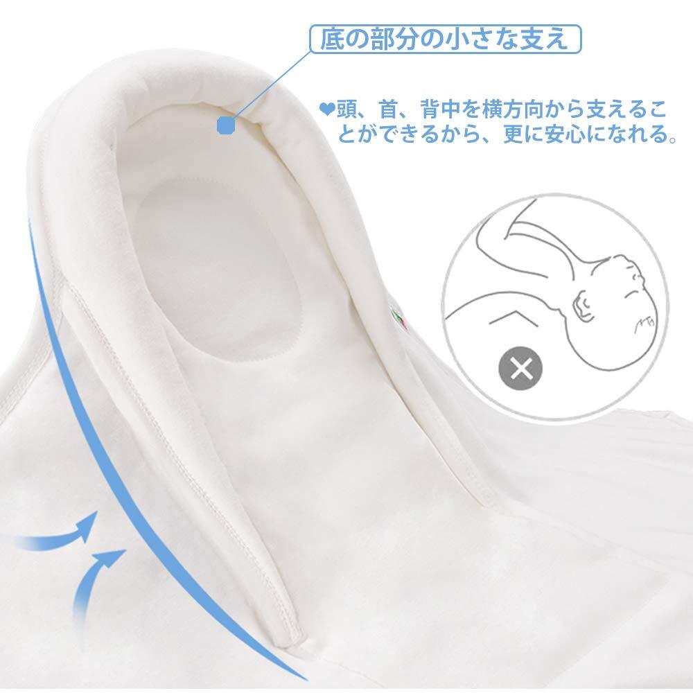 U型のシルエット: うまれたばかりの赤ちゃんの首と背中の筋肉が弱くて、抱かれる時、何らかの危険が生じやすい。 おくるみカバーの底の部分には小さな支えがあるので、 どんな状態でも赤ちゃんの頭、首と背中が水平姿勢に保てる。