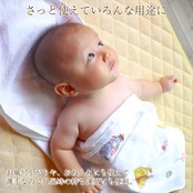 【ガーゼ素材】表面は綿100%のガーゼ素材で敏感なお肌のあかちゃんにも安心。裏面はふっくらしたパイル地で水分を素早く吸収してくれます。