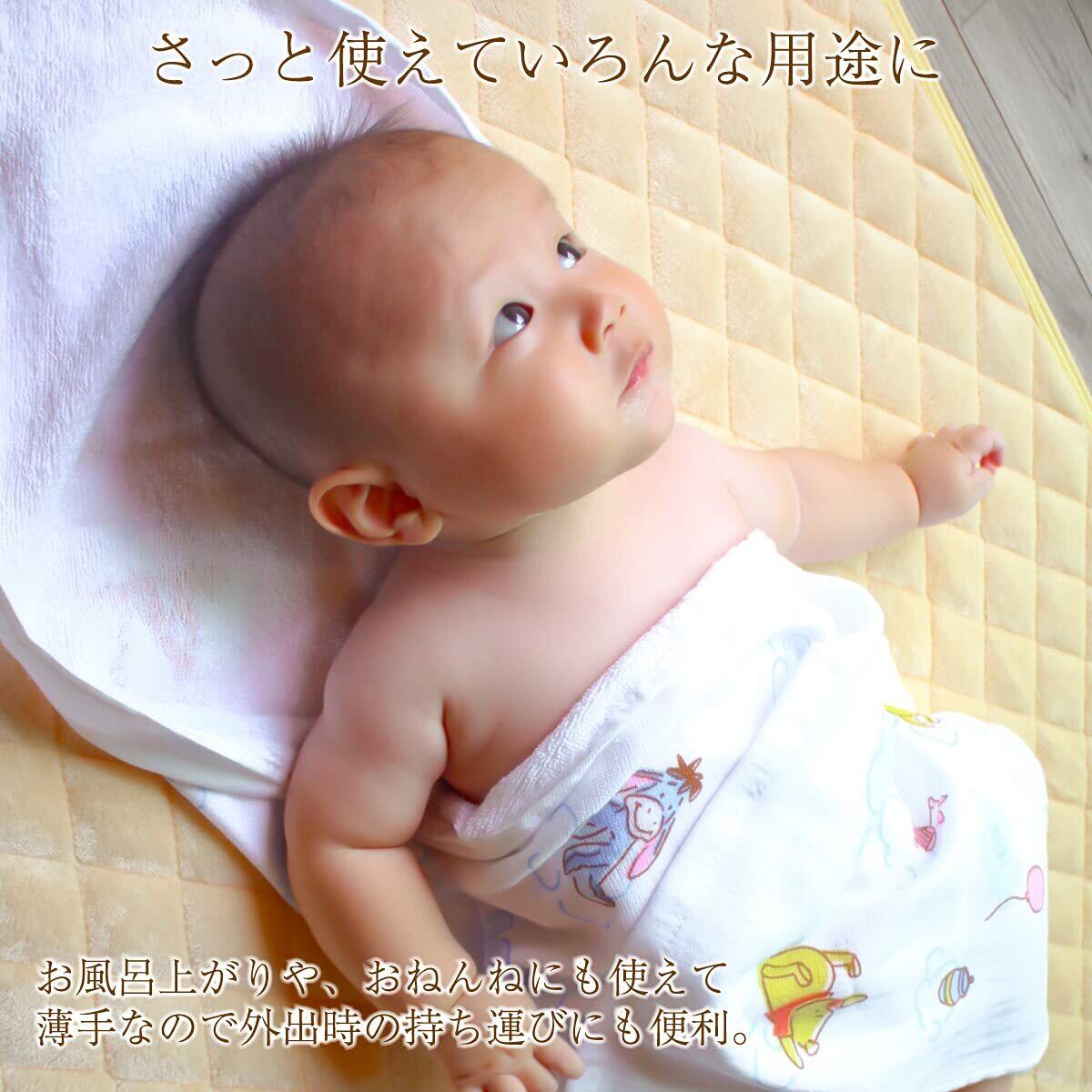 un doudou 湯上りタオル 沐浴バスタオル 2枚組 80×80cm 表ガーゼ 裏パイル Disney プー&フレンズ 身長計付き 綿100% NZ8615(2)