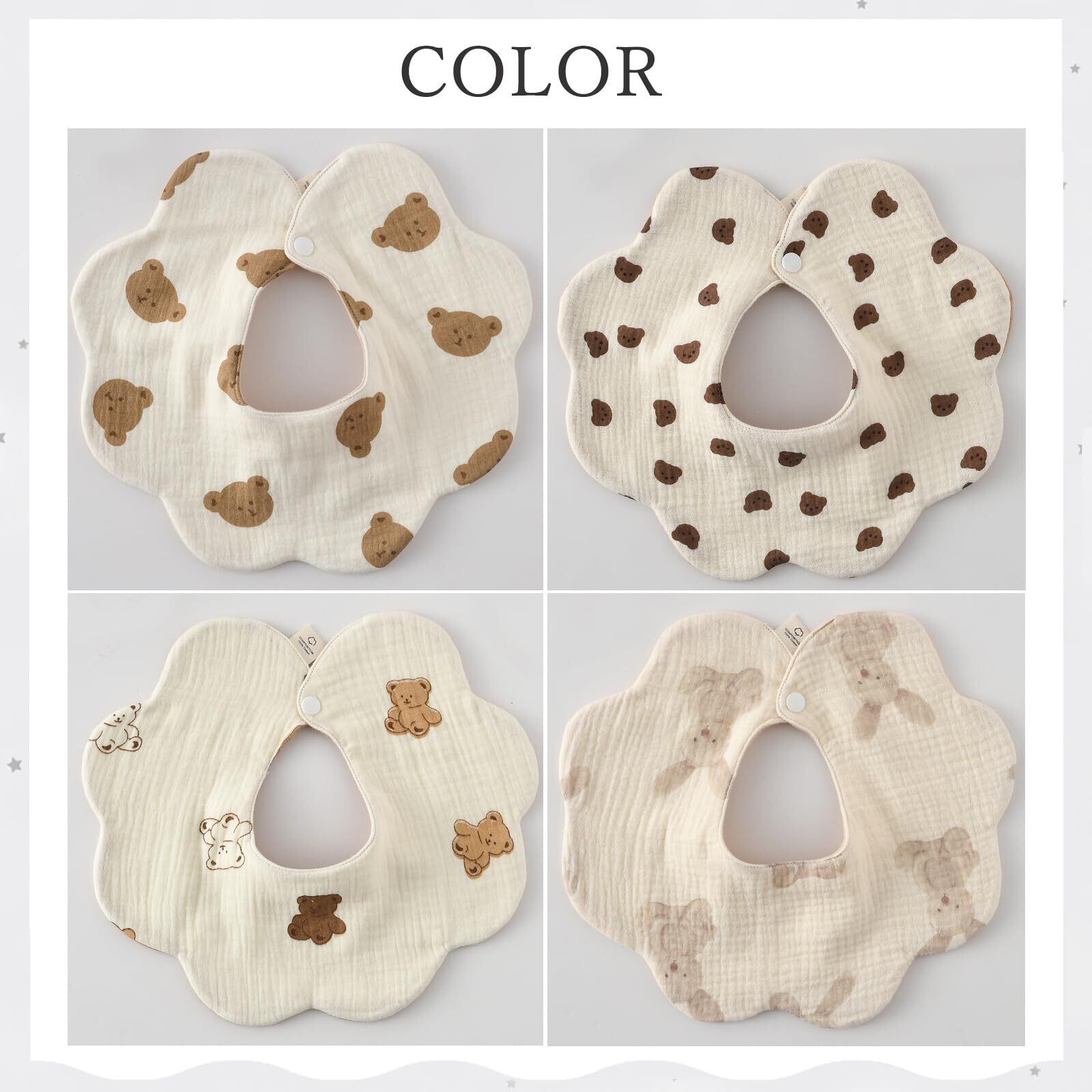 [GoUseGo] ベビースタイ 4枚セット 両面使える 6重ガーゼ 赤ちゃん よだれかけ おしゃれ 新生児 360度 無地 お食事 ベビーギフト 出産祝い 女の子 男の子