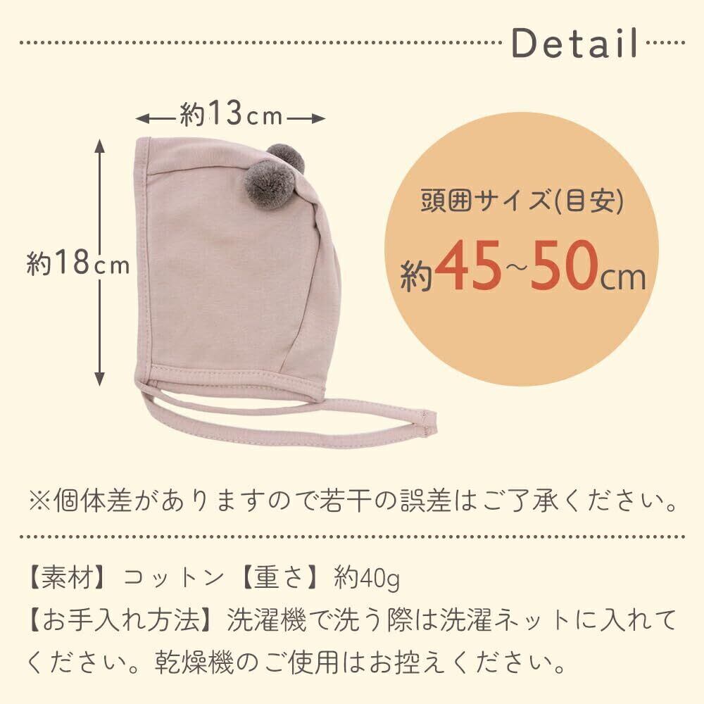 【ふんわり優しい肌ざわり×コットン素材】コットン使用で通気性も良く、春秋冬のスリーシーズン対応。裏地はなめらかで赤ちゃんのデリケートなお肌にもやさしく、長時間の使用でも快適。あご紐付きでズレにくく、ぴったりフィット。45~50cmのサイズ設計で成長に合わせて使用可能