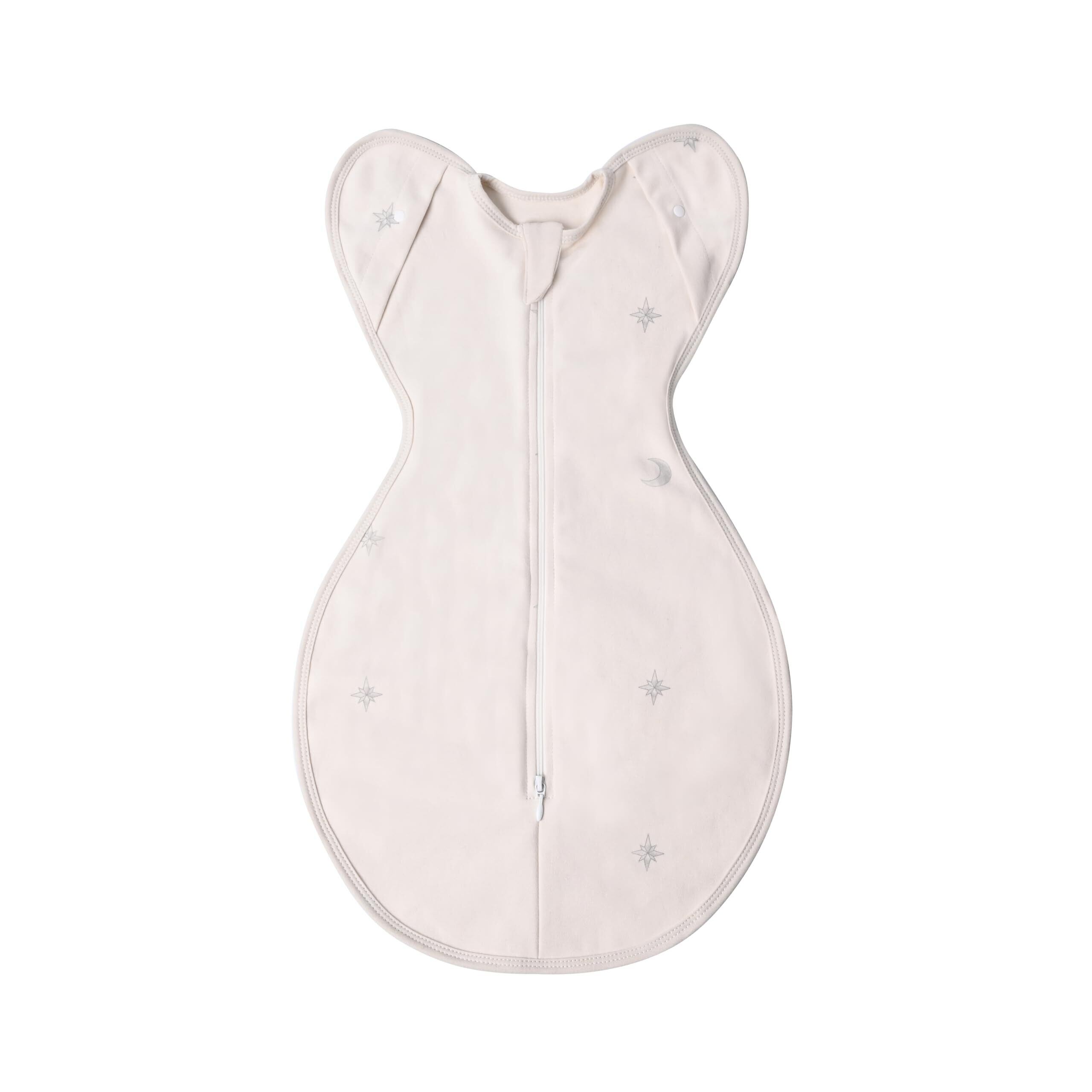 スワドル コットン おくるみ 新生児 モロー反射 寝かしつけ 夜泣き 手が出せる ダブルファスナー 新生児 0歳 1歳 2サイズ Hugmuu ハグムー (OrnamentGrayStar, M)