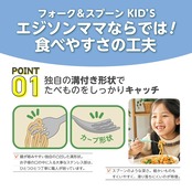月齢:3歳頃~。スプーンとフォークの長さ:16.2cm。お手入れ(本体)):食洗器・乾燥機・薬液消毒・煮沸消毒・電子レンジ・漂白NG。お手入れ(ケース)):薬液消毒・漂白OK、食洗器・乾燥機・煮沸消毒・電子レンジNG。サイズ/重量(スプーン):32.6×22.8×162mm/31g、サイズ/重量(フォーク):26.1×19.6×162mm/28g、サイズ/重量(マルチケース):72×182×30mm/51g。生産国:韓国。