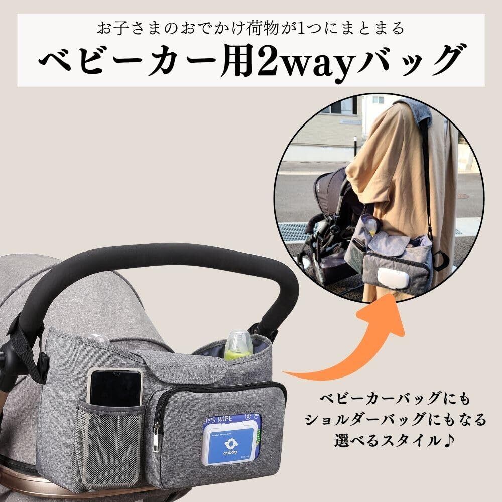 【2way仕様】ベビーカー用バッグ ベビーカー ショルダーバッグ ドリンク ホルダー ポケット アンダーバッグ オーガナイザー (ブラック)