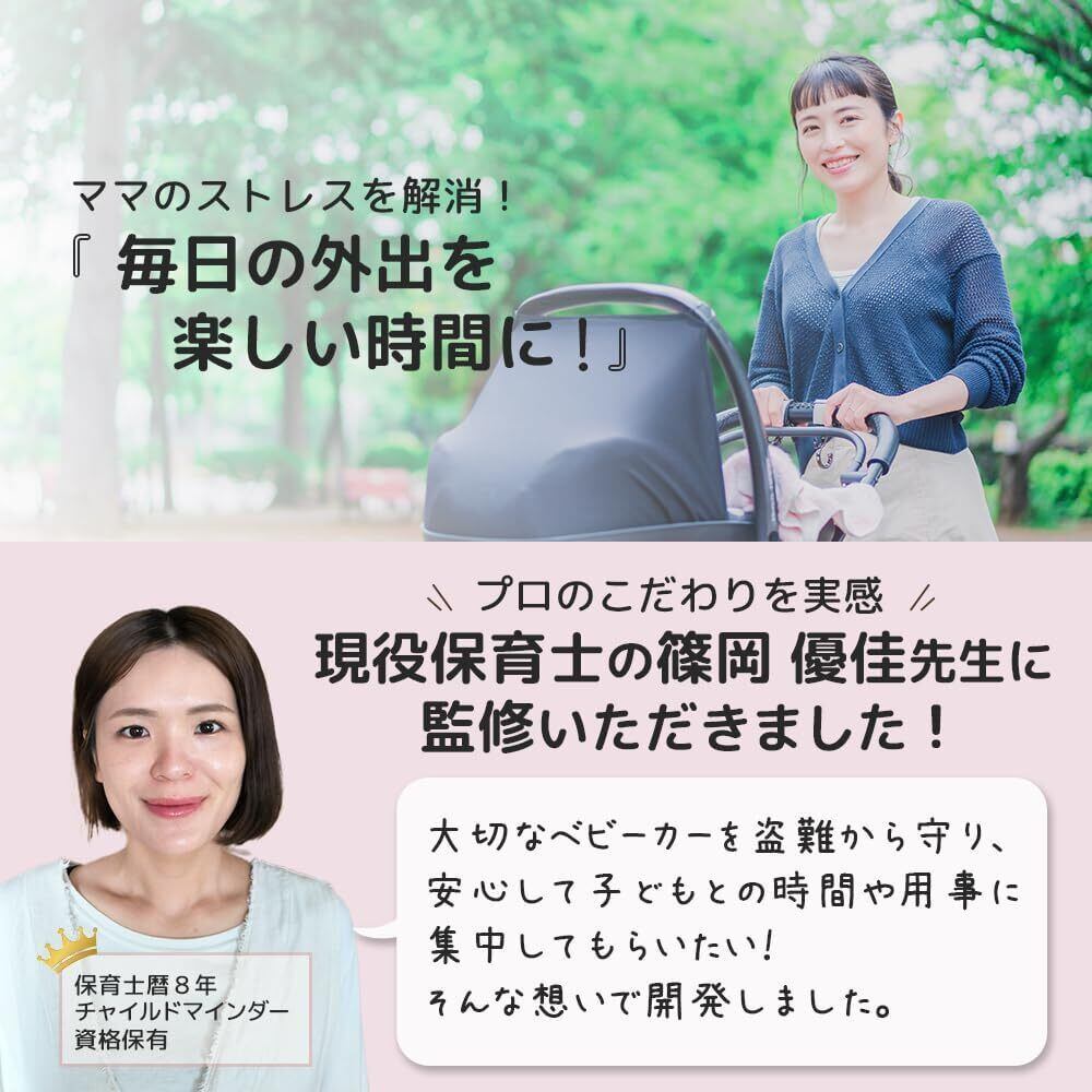 【保育士監修!安心のベビーカーセキュリティ】 Weestyleのベビーカー盗難防止セキュリティワイヤーは、保育士監修のもと作られた、子育て中のママに嬉しいアイテムです。