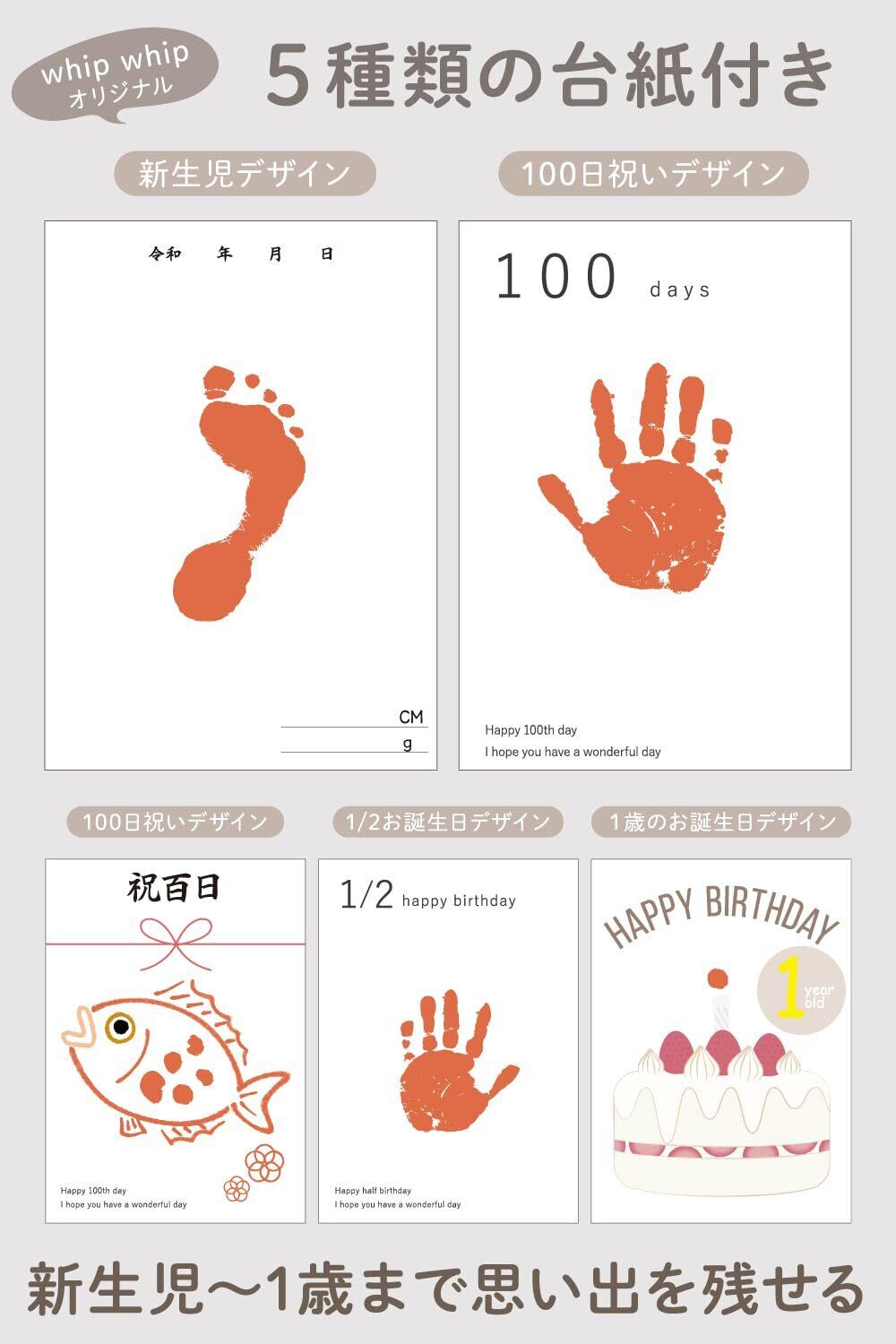 whip whipオリジナルの台紙5枚がセットに。 新生児から1/2バースデーにもお使い頂けるように台紙を工夫し作成致しました。 今しか残せない思い出だから、いつまでも見える形に。見る度ほっこり思い出す。そんな思い出づくりのお手伝いができましたら嬉しいです。※本商品は使い切りタイプになります。同じヶ所にて2回目スタンプを押す場合、色合いが薄くなります。