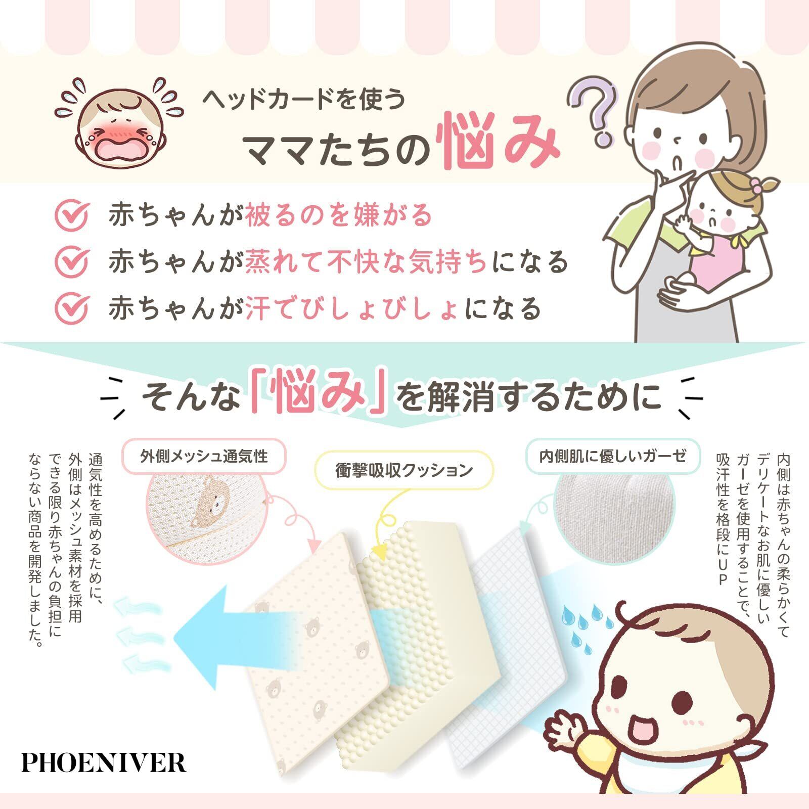 【保育士共同開発】ベビー 赤ちゃん ヘルメット メッシュ通気性 ベビーサークル ベビーフード ベビーセンサー ベビーガード 転倒防止 装着ガイド付 PHOENIVER