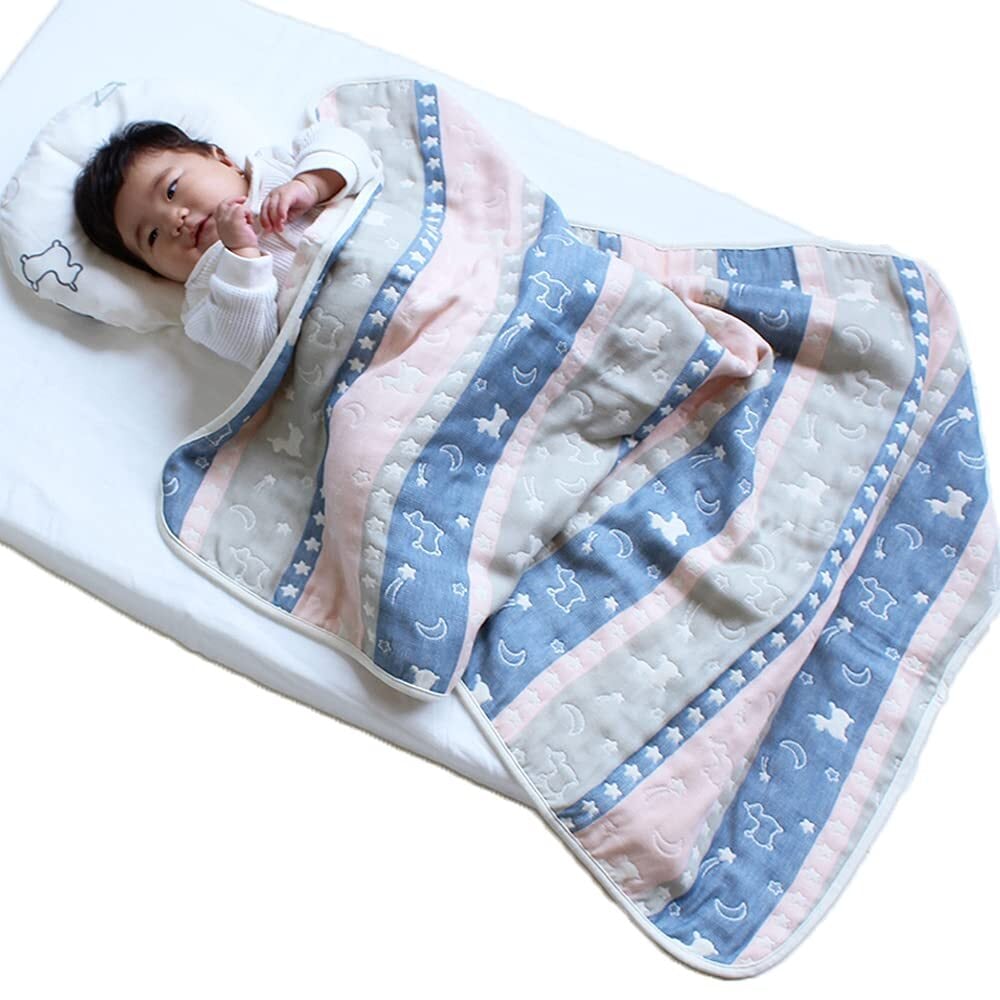 Rody nino nino ロディ 6重ガーゼケット 日本製 6重 ガーゼケット ベビー おくるみ (ピンク/ネイビー)