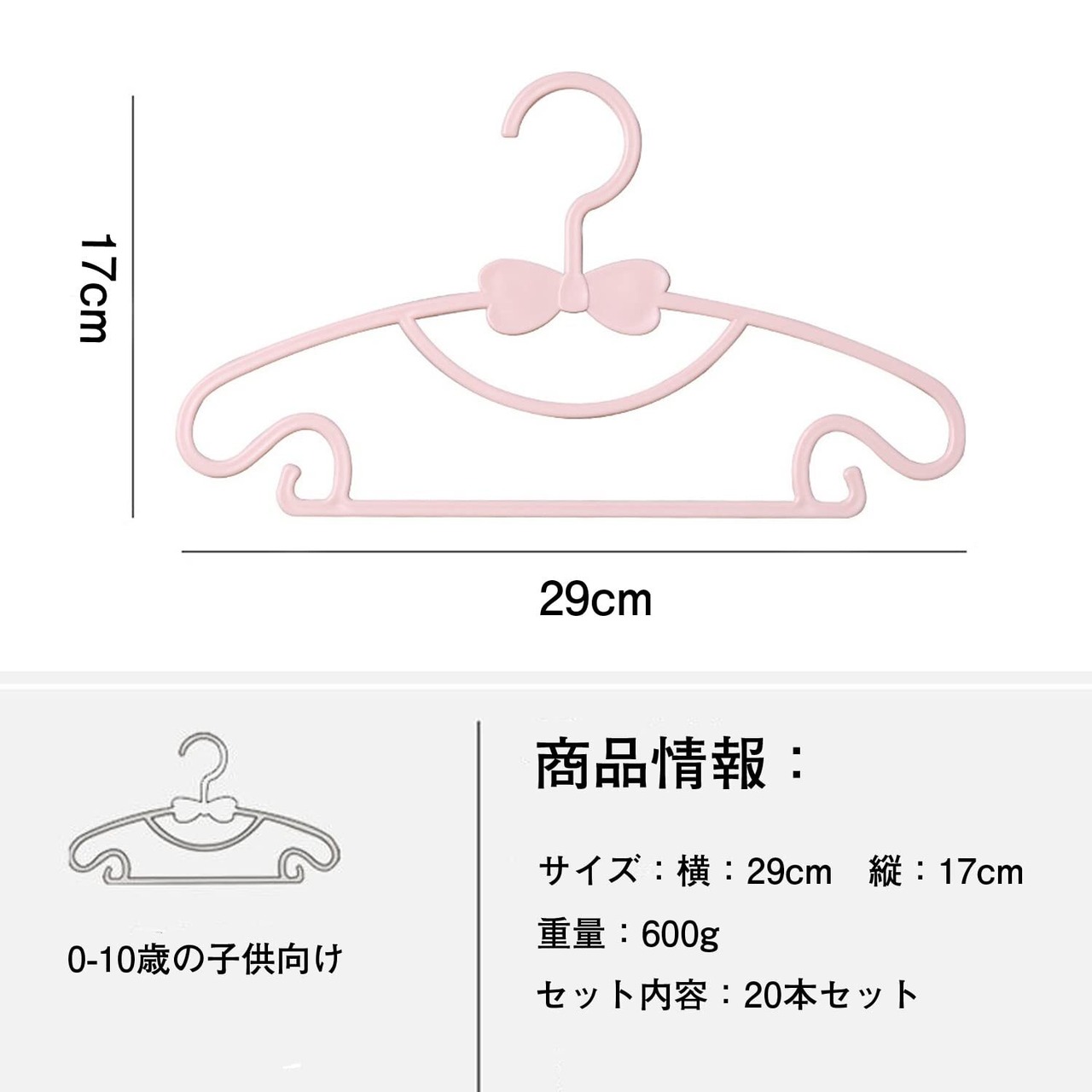 ベビーハンガー 20本セット ハンガー 子供用 出産準備品 洗濯物干し 衣類ハンガー 乾湿両用 ハンガー クロゼット収納 省スペース (ピンク)