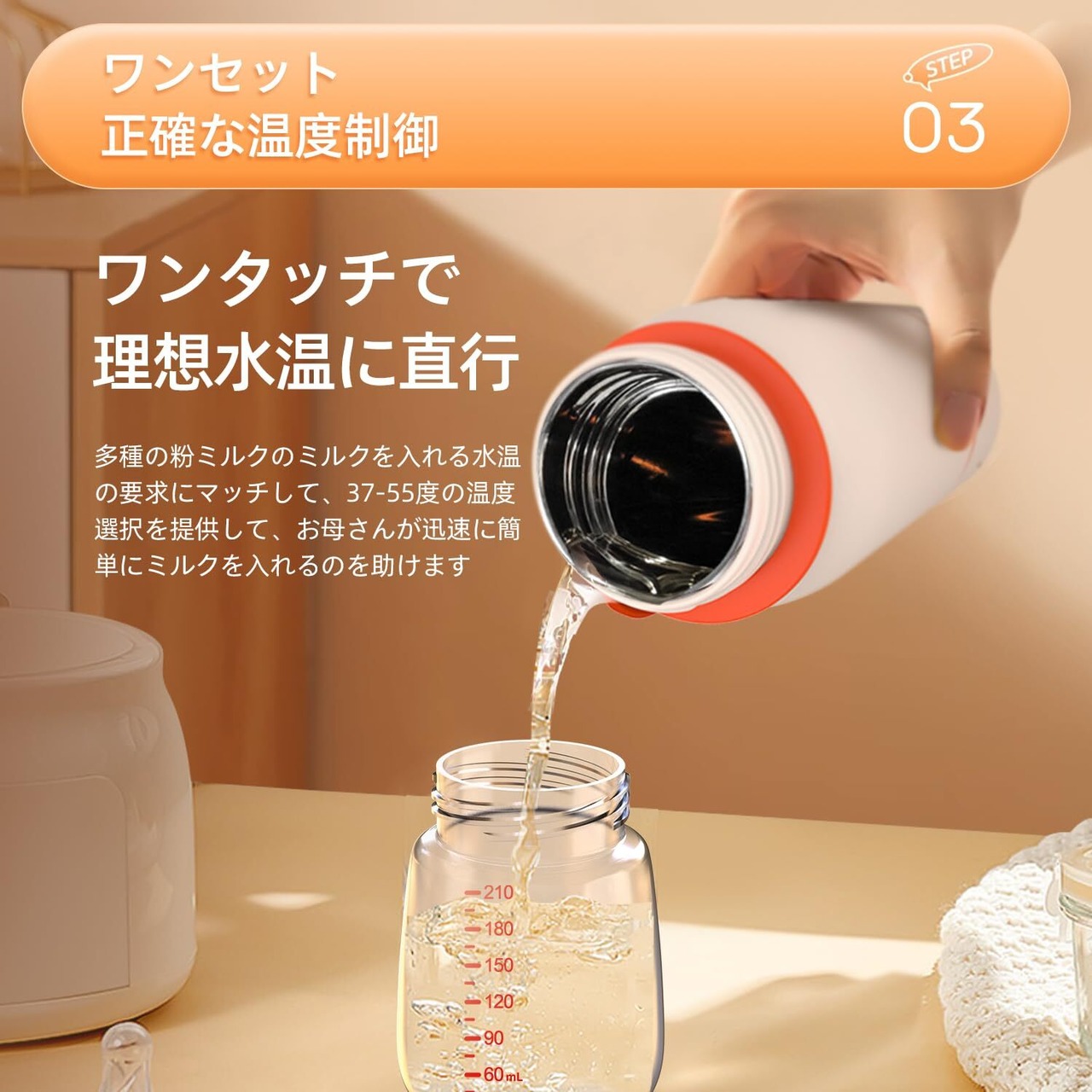 【温度調節&表示機能】70℃一発設定で粉ミルク調乳に最適 内蔵温度センサーで水温をリアルタイム表示。外出先でも安全・スピーディーにベビー粉ミルクを調乳可能。温度範囲は40℃~100℃まで自由設定でき、紅茶やコーヒーにも対応