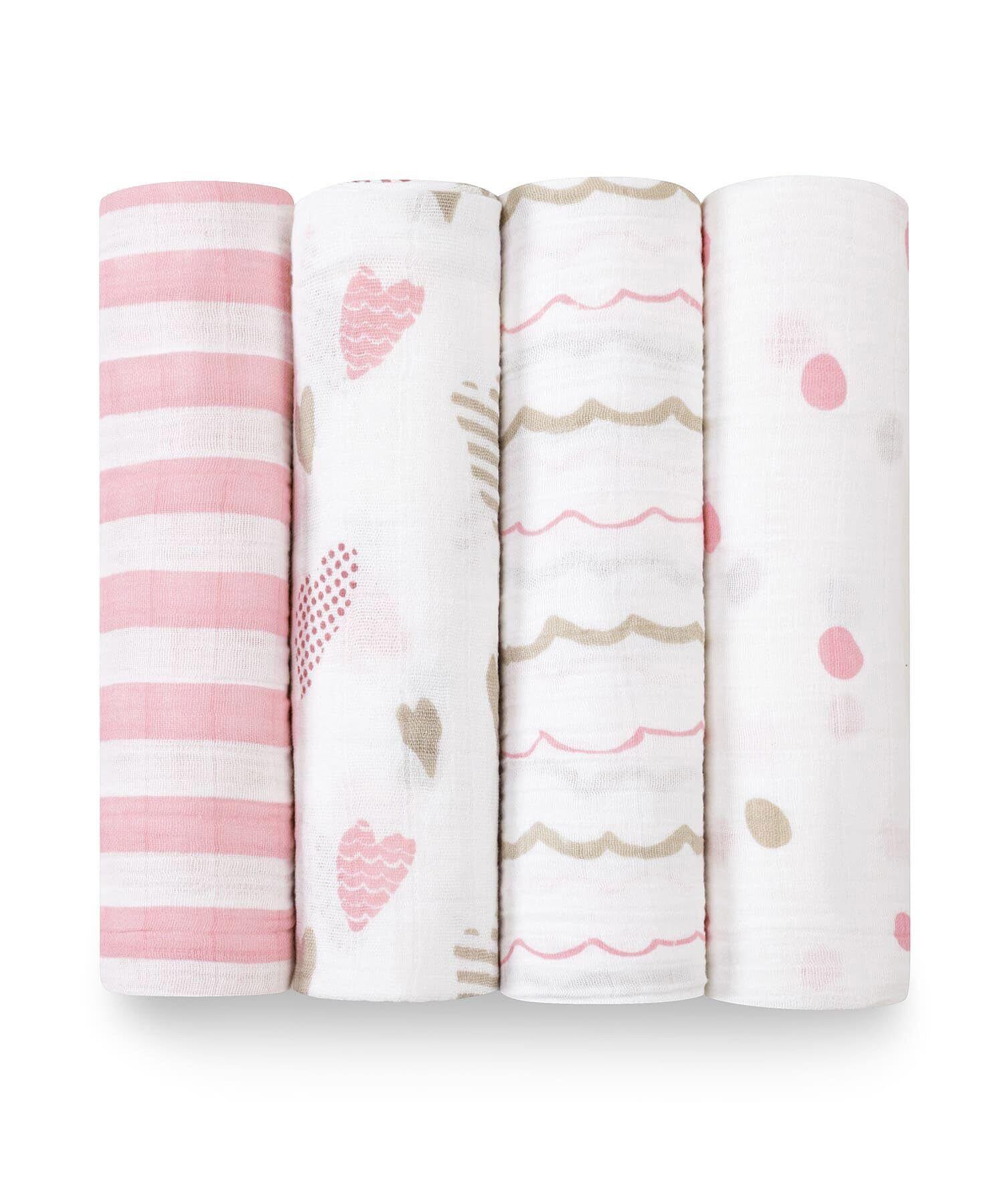 aden + anais(エイデンアンドアネイ) 【日本正規品】出産祝い ベビーギフト モスリンスワドルおくるみ 4枚セット mon Fleur ASWC40007J heart breaker 120x120センチメートル (x 4) 2045