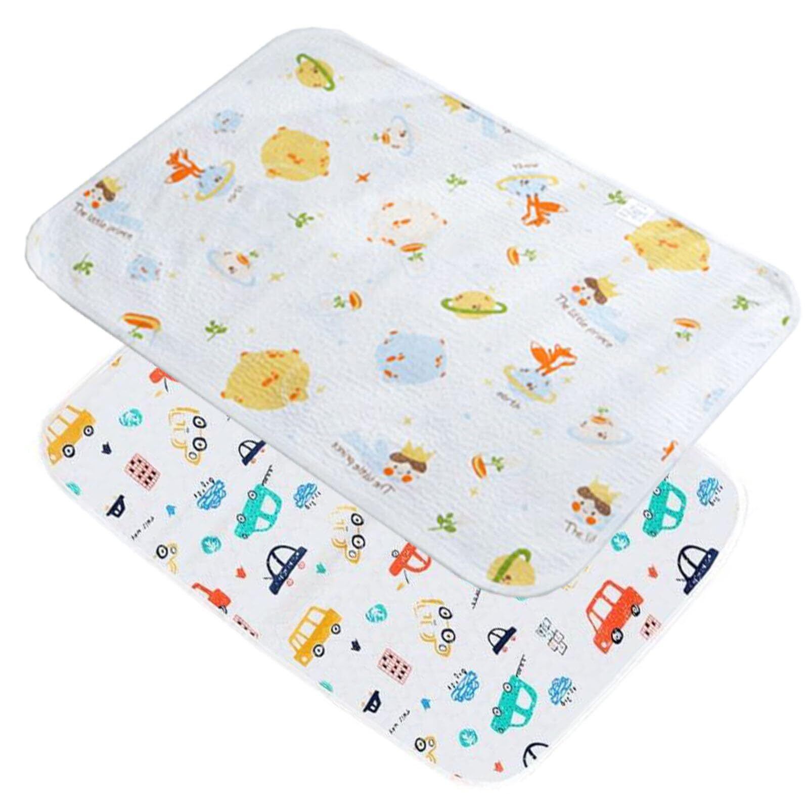 サムコス おむつシート ベビーマット 2枚セット 綿100% 防水 吸水 肌触り良い 持ち運び便利 おねしょシーツ 介護 ベビー用品 家用 外出用 50cm*70cm (自動車+宇宙星)
