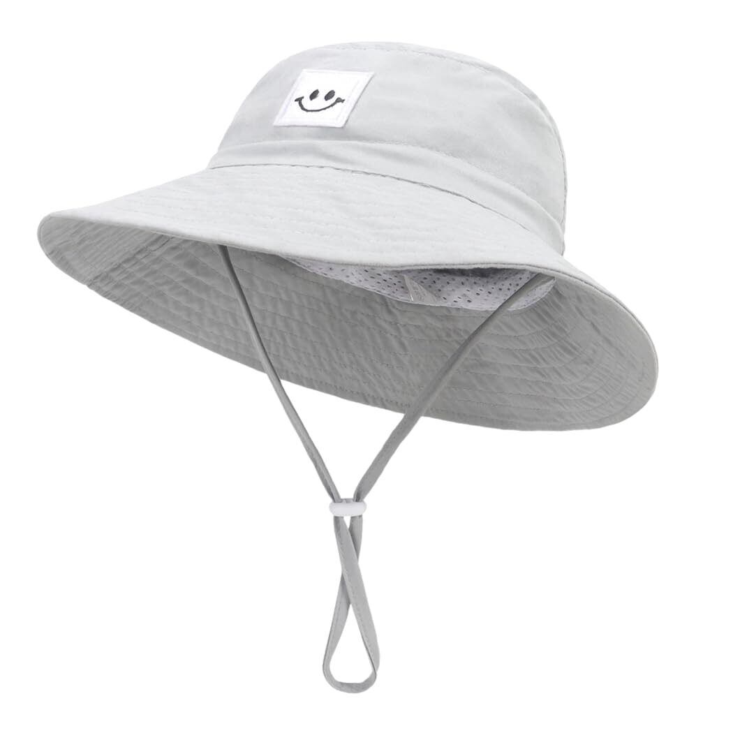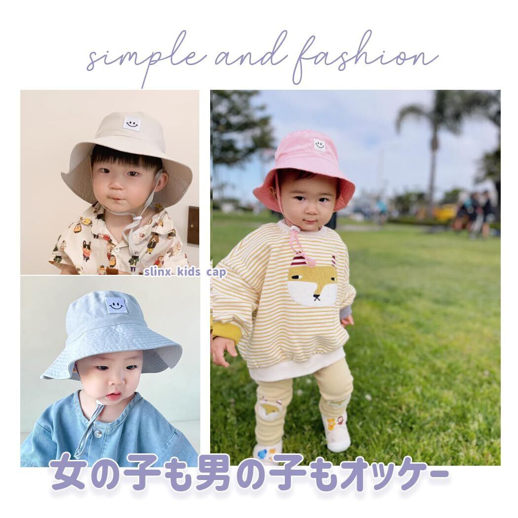 【ベビー帽子】大人気な子供用日よけ帽子です。かわいい笑顔刺繍がワンポイント~見た目が可愛くておしゃれです。アウトドアスタイルの小物として、これからの季節にピッタリ!