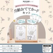 産まれたとき~1才を迎えるまでの記念日や毎月の手形を、おててカード(専用台紙)に記録し、木製スタンドで飾ることができる制作キットです。